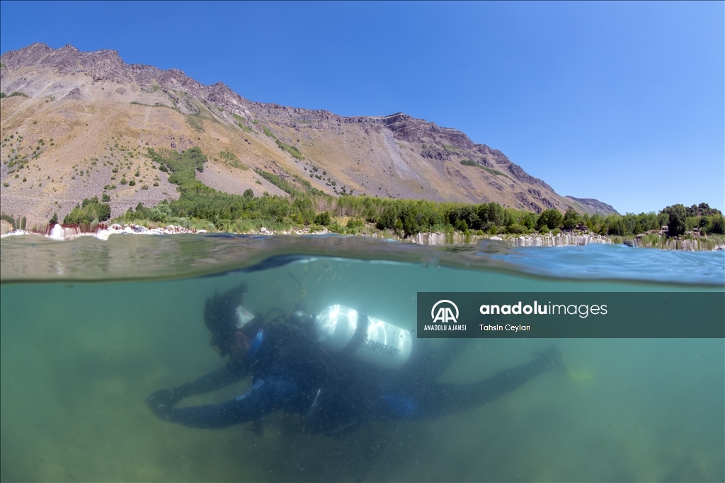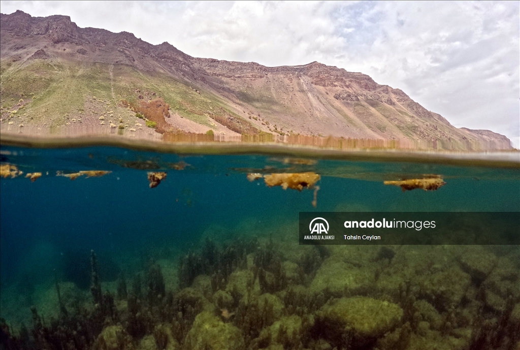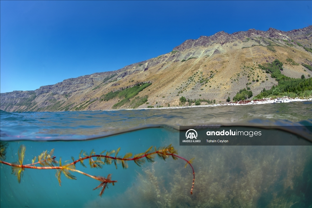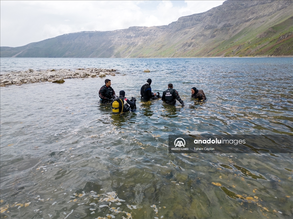 Su altı belgesel yapımcısı ve görüntü yönetmeni Tahsin Ceylan ile Sahil Güvenlik Dalış Emniyet Güvenlik ve Arama Kurtarma (DEGAK) Timleri, Bitlis'in Tatvan ilçesindeki Nemrut Krater Gölü'nü su altından görüntüledi.