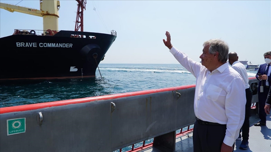 Kıtlığın son dönemlerde Afrika'da daha fazla etkili olduğuna işaret eden Guterres, Afrika Boynuzu'na tahıl götürecek gemi Brave Commander'ın karşısında bulunmasından dolayı büyük bir duygu yoğunluğu yaşadığını belirtti.