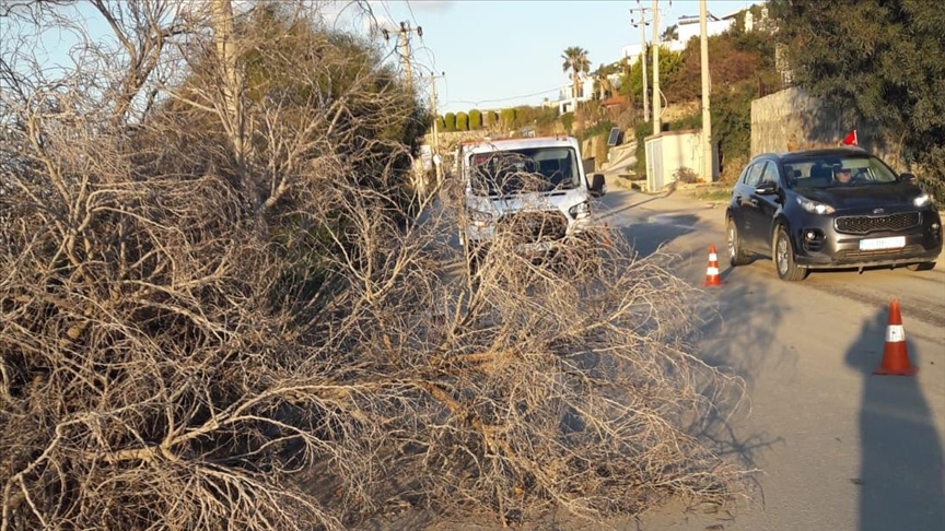 Bodrum Belediyesi Park ve Bahçeler Müdürlüğü ekipleri, yıkılan ağaçları kaldırarak yolu yeniden ulaşıma açtı.