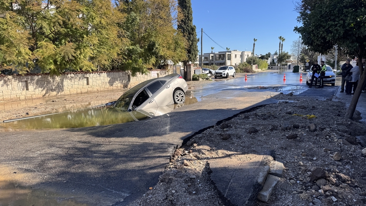 Yahşi Mahallesi Oyder Caddesi'nden geçen içme suyu ana isale hattında meydana gelen patlama sırasında caddede ilerleyen Aysen Üstünel'in kullandığı 34 SJ 6195 plakalı otomobil çukura düştü.