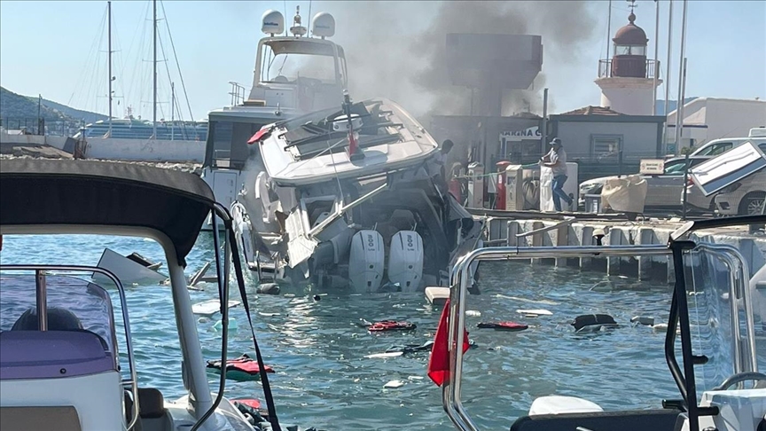 Patlamanın ardından motoryatın büyük bir bölümü zarar görüp su aldı, 1'i karada olmak üzere 3 kişi yaralandı.