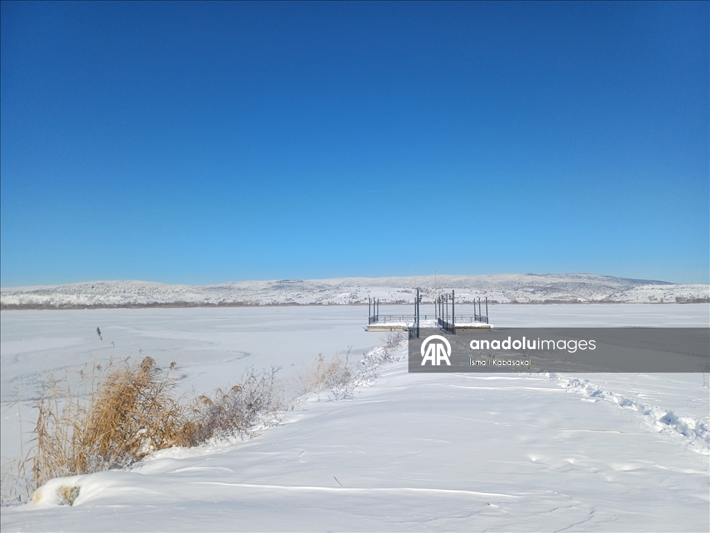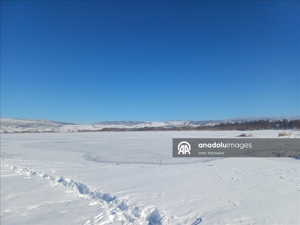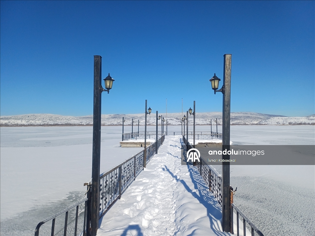 Gölün donmasıyla güzel manzaralar oluşurken, belediye yetkilileri insanları buz tutan gölün üzerine çıkmamaları konusunda uyardı.