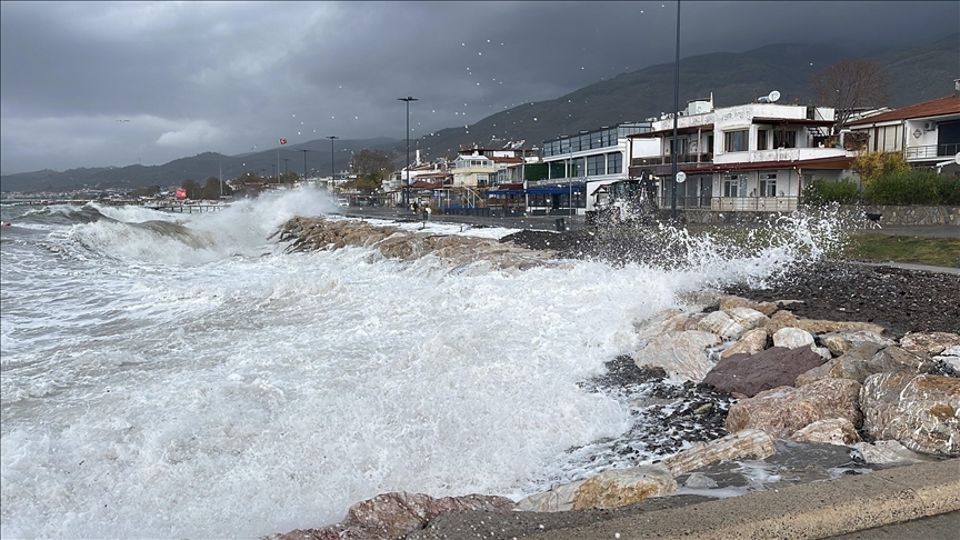Şiddetli lodosun etkisiyle oluşan yaklaşık 3 metre boyundaki dalgalar nedeniyle kordon bölgesi deniz dolgusunda kullanılan irili ufaklı taşlarla doldu.