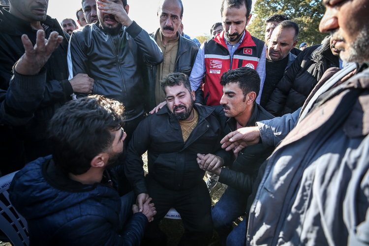 İçişleri Bakanı Süleyman Soylu ile beraberindekiler, cenaze namazları öncesinde ölenlerin yakınlarına taziyelerini iletti.