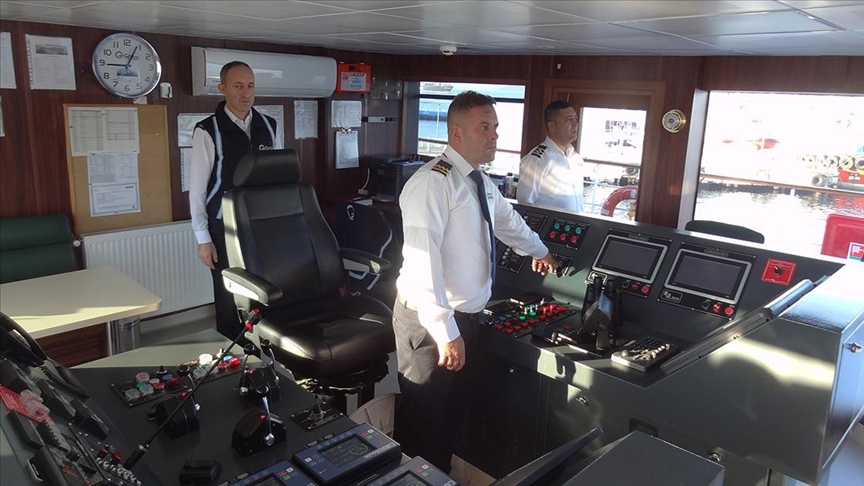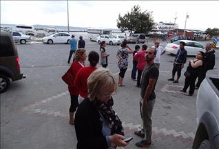 Farklı kentlerden şehitlikleri ziyarete gelen öğrenciler ve vatandaşlar ile çalışanlar, feribotta saygı duruşunda bulundu.