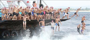 Çanakkale Boğazı'ndan geçen yabancı bayraklı gemiler de siren çaldı.