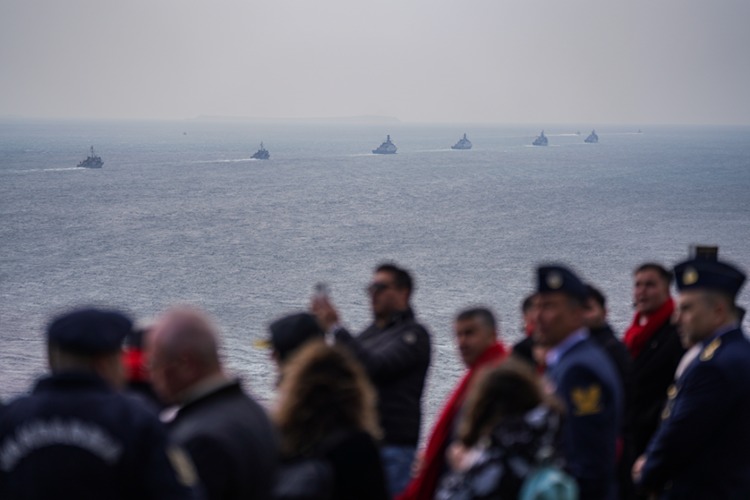 Törende, Çanakkale Boğazı'nda demirli "TCG Kınalıada" korvetinden 21 pare top atışı yapıldı.