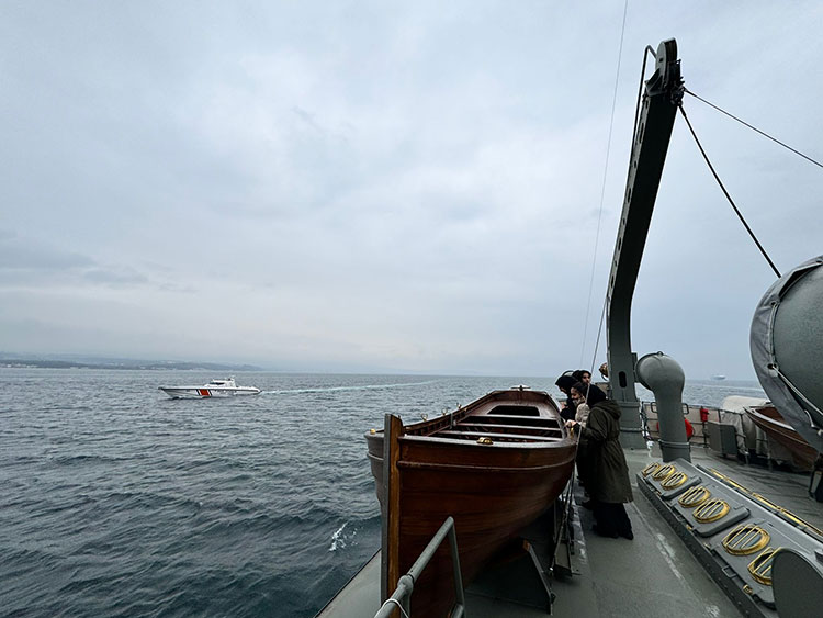 Gemide protokol üyelerine Nusret'in 109 yıl önceki kahramanlığı video gösterimi ile anlatıldı.