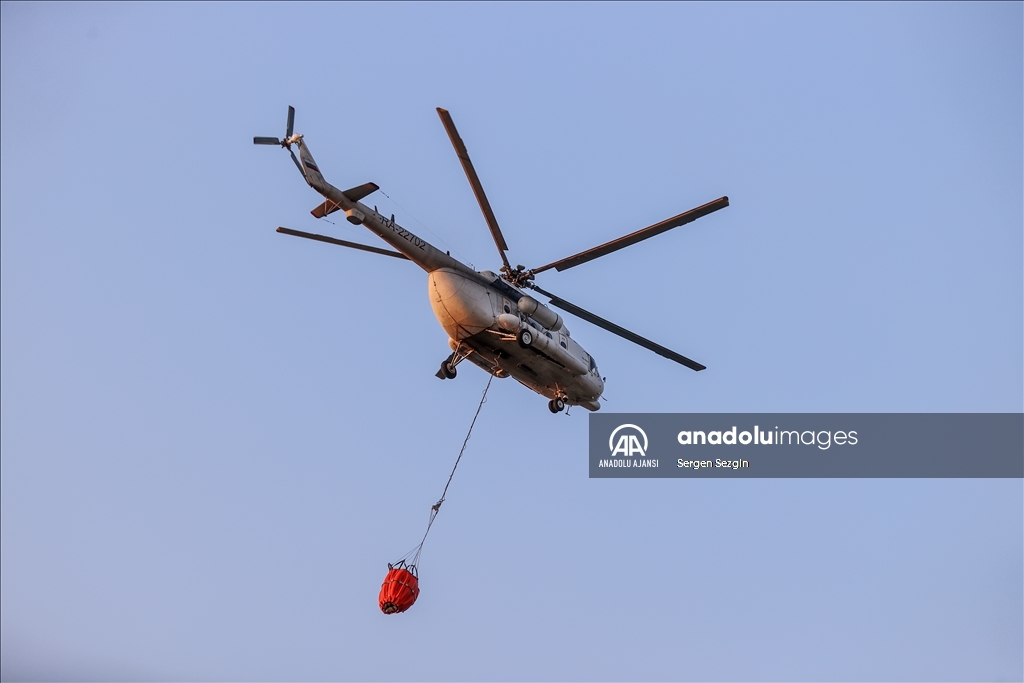 Geniş bir alanı etkileyen yangını söndürme çalışmalarında çok sayıda personel ve kara aracının yanı sıra uçak ve helikopterler de yoğun mesai harcadı.
