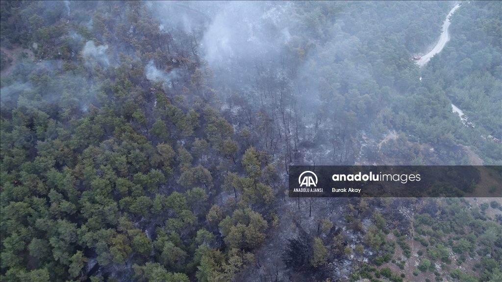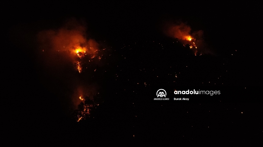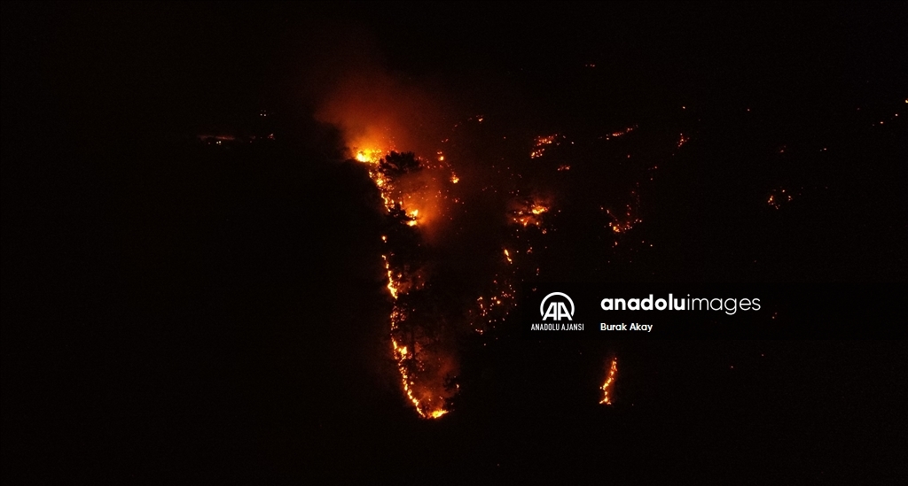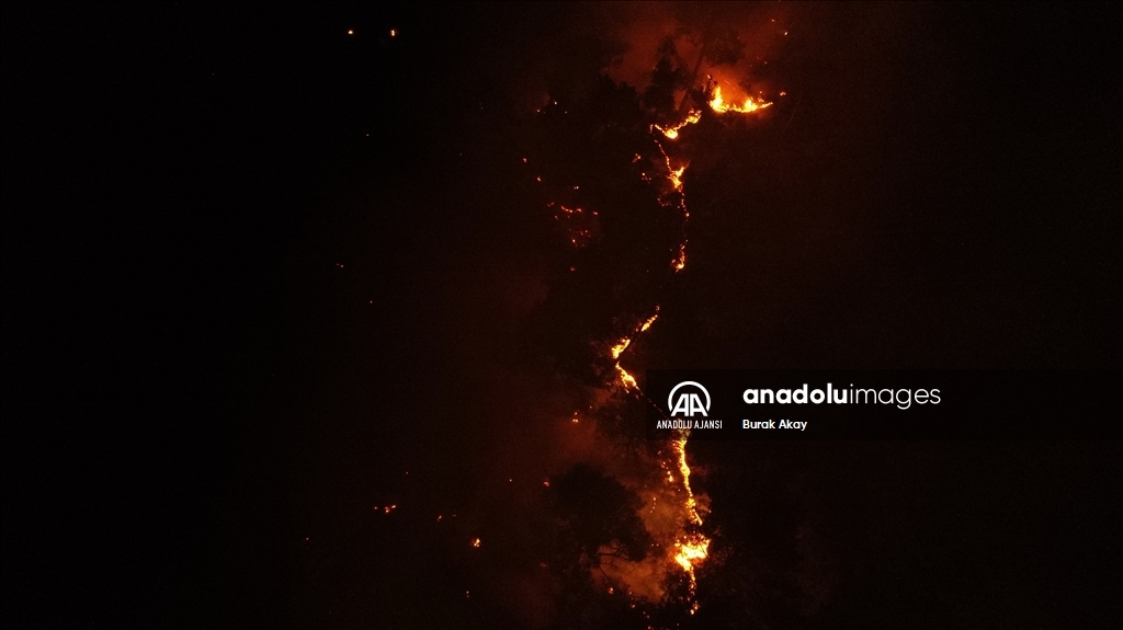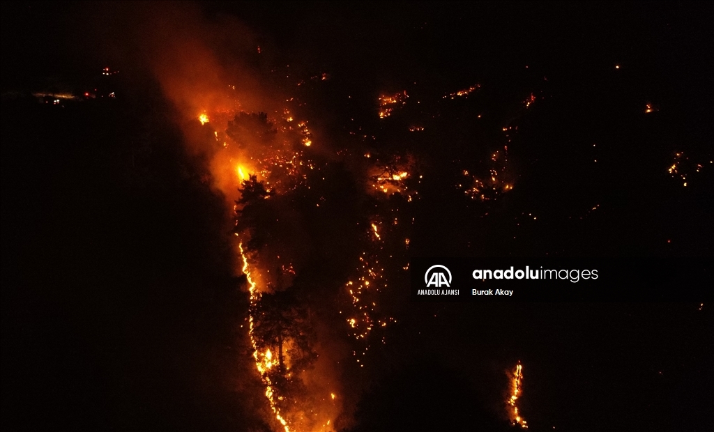 Öte yandan, yaklaşık 9 saattir süren yangında son durum, Anadolu Ajansı (AA) ekibi tarafından havadan dron ile görüntülendi.