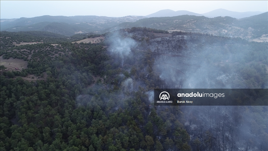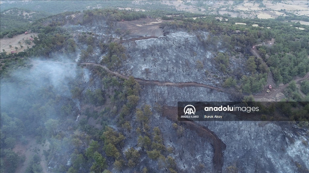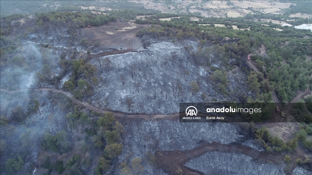 Çanakkale'de devam eden orman yangınındaki son durum dron ile görüntülendi.