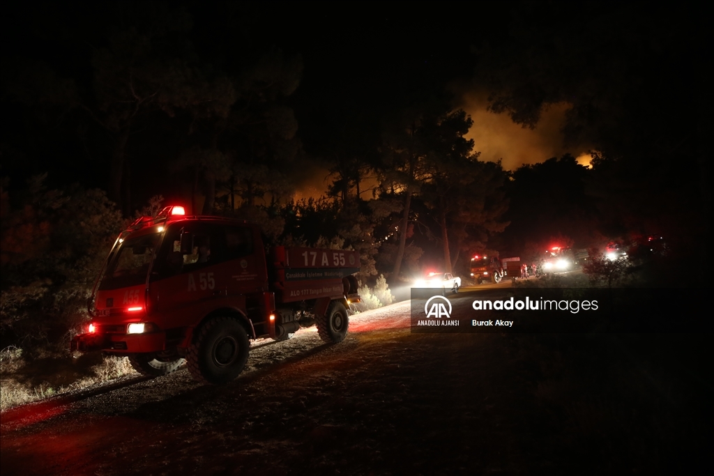 Vatandaşların ihbarı üzerine bölgeye Çanakkale Orman Bölge Müdürlüğü bünyesindeki 35 arazöz, 5 dozer, 8 ilk müdahale aracı, 8 su ikmal aracı, 4 iş makinesi ve 300 personel ile çevre belediyelerin itfaiye ekiplerinin yanı sıra İl Jandarma Komutanlığına ait TOMA ve itfaiye ekibi sevk edildi.