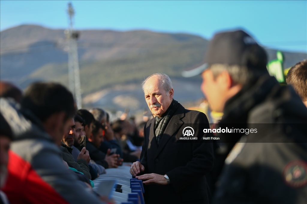 Erdoğan, Gaziantep'in Nurdağı ilçesinde AFAD'ın oluşturduğu konteyner kentte MHP Genel Başkanı Devlet Bahçeli ile incelemelerde bulundu, depremzedelerle görüştü.