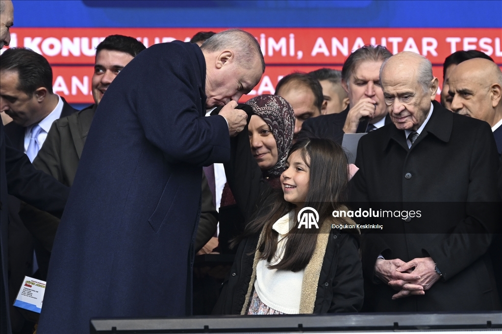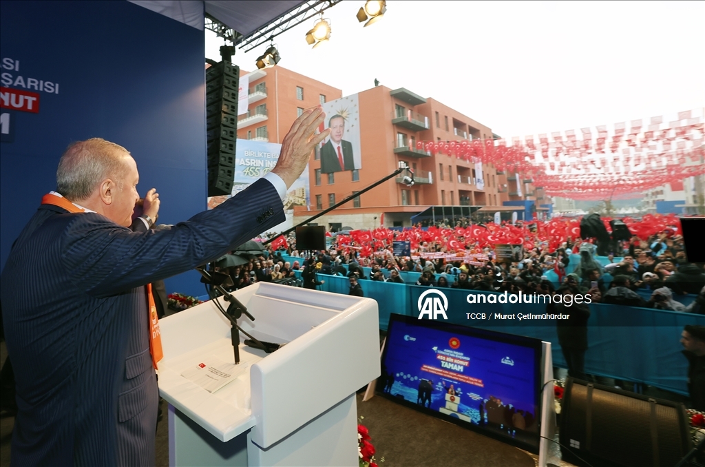Türkiye'nin aydınlık yarınlarına güvenle yürüyebilmesi için güçlü bir AK Parti'ye ve Cumhur İttifakı'na ihtiyacı olduğunu vurgulayan Erdoğan, "Vatandaşlarımızla birlikte Suriye, Filistin, Irak başta olmak üzere gönül ve kültür coğrafyamızdaki tüm kardeşlerimizin bizlere ihtiyacı var." diye konuştu.