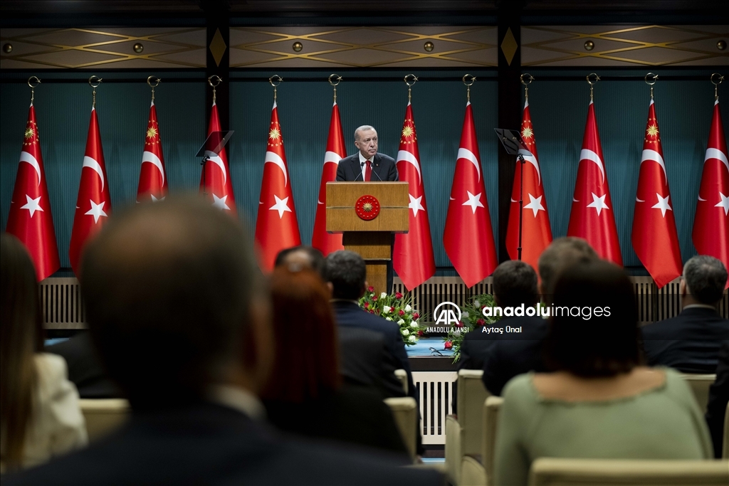 Cumhurbaşkanı Recep Tayyip Erdoğan, Cumhurbaşkanlığı Külliyesi'ndeki Kabine Toplantısı'nın ardından millete seslendi.