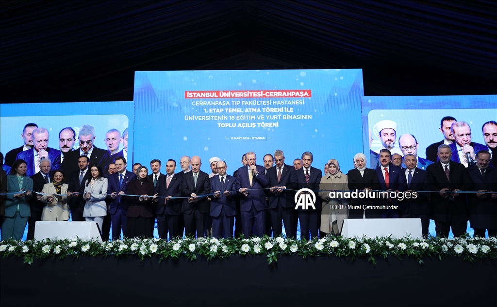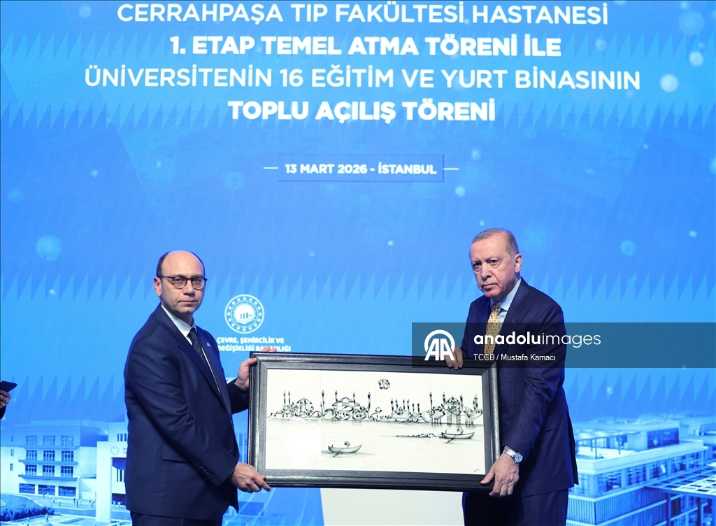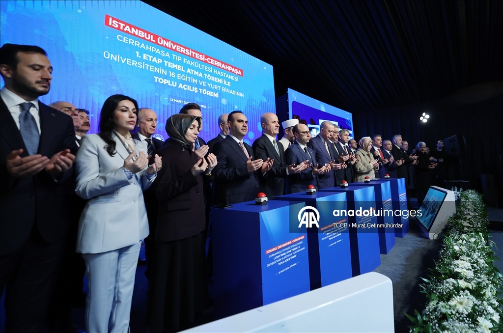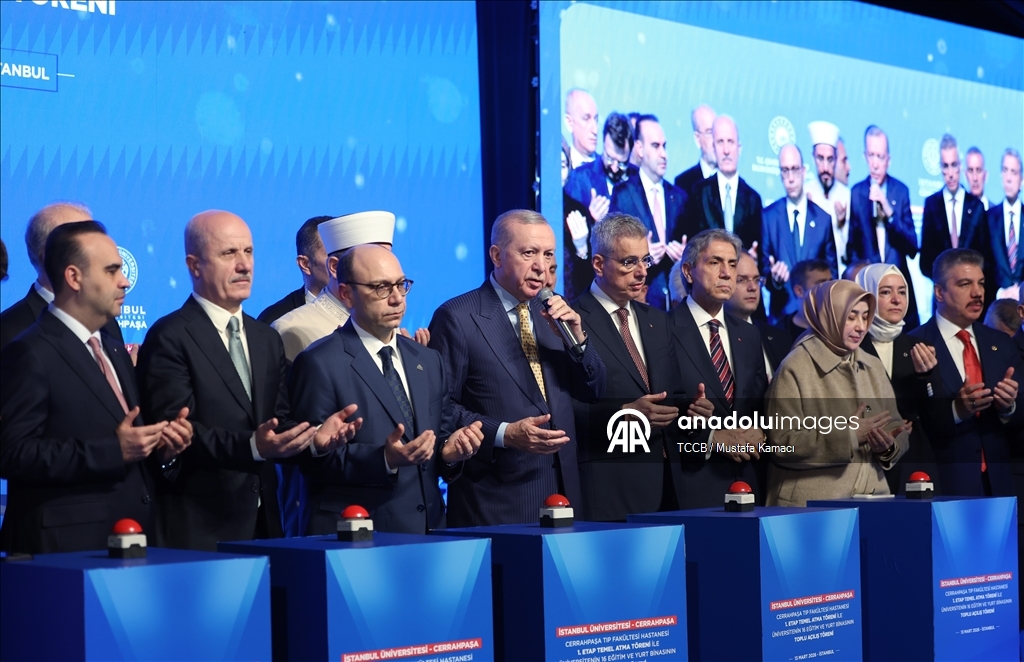 Cumhurbaşkanı Recep Tayyip Erdoğan, İstanbul Üniversitesi-Cerrahpaşa (İÜC) Cerrahpaşa Tıp Fakültesi Hastanesi 1. Etap Temel Atma Töreni ile Üniversitenin 16 Eğitim ve Yurt Binasının Toplu Açılış Töreni'nde yaptığı konuşmanın başında davetlileri selamladı.