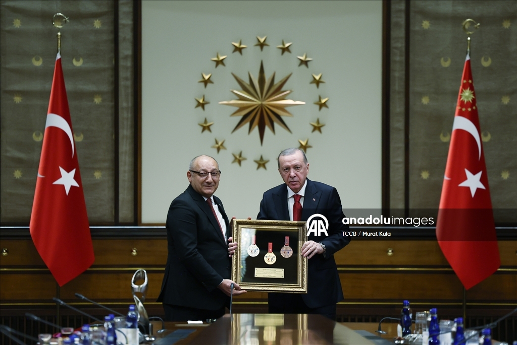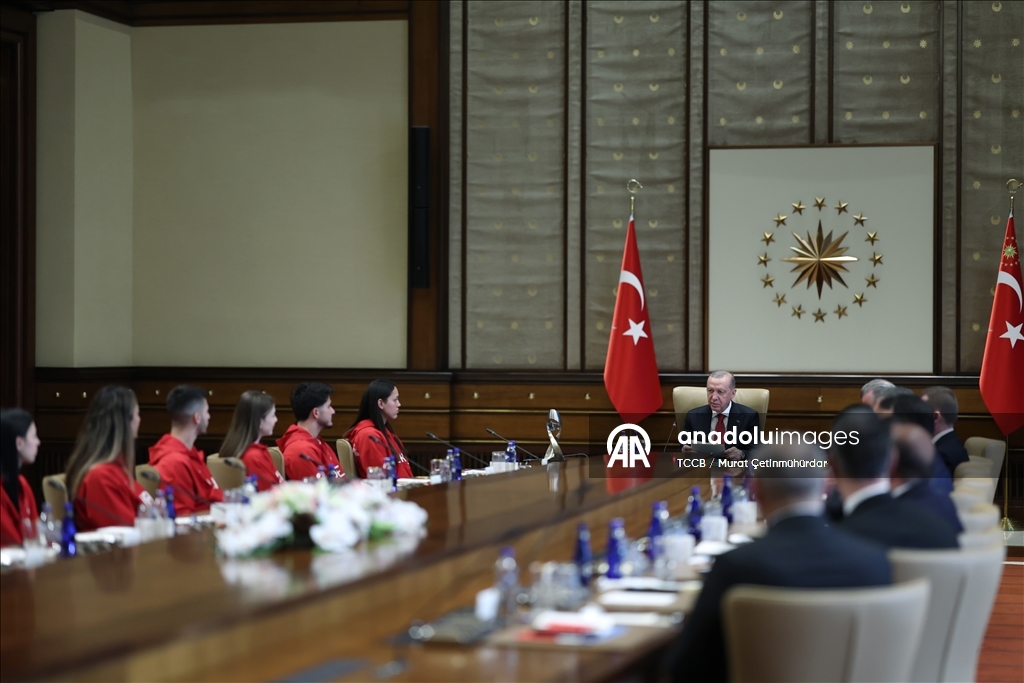 Cumhurbaşkanı Erdoğan, çeşitli branşlardan başarılı sporcuları Cumhurbaşkanlığı Külliyesi'nde kabul etti https://t.co/eGguNMnIT4 pic.twitter.com/IkQEhUroho