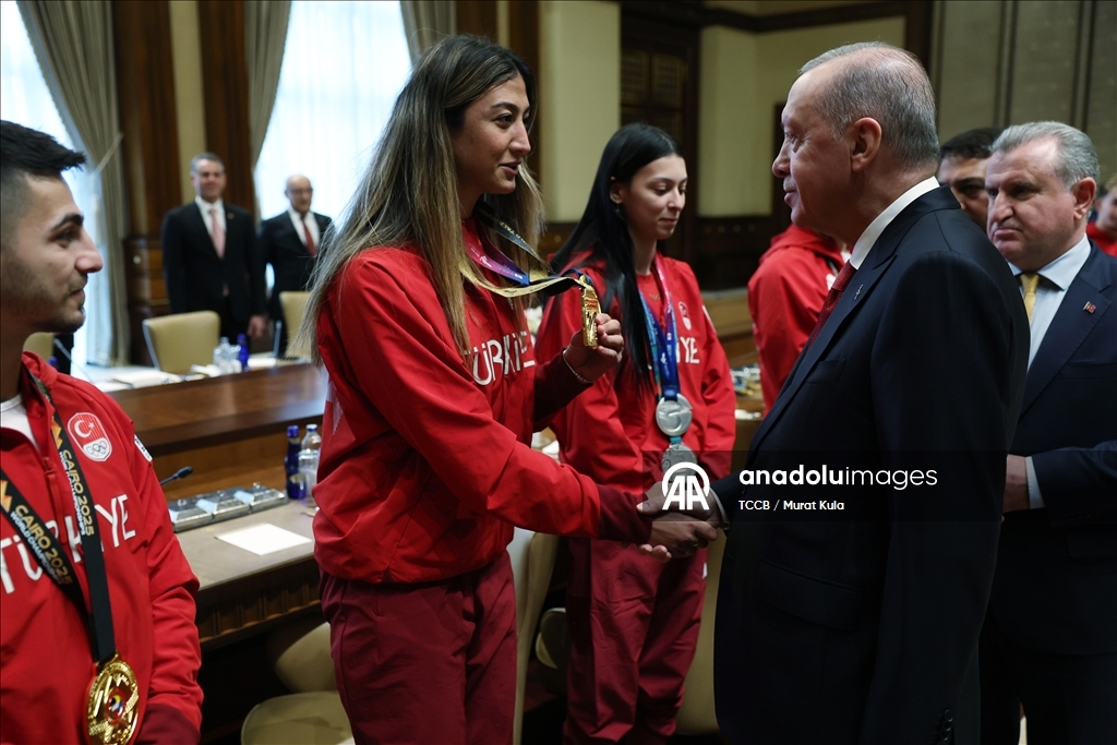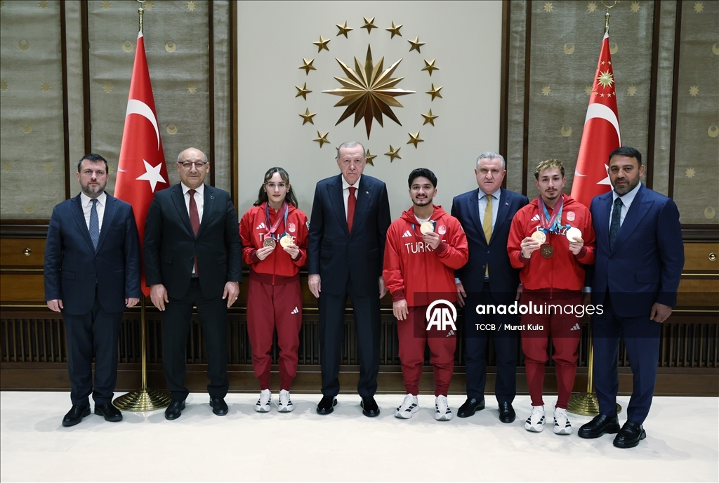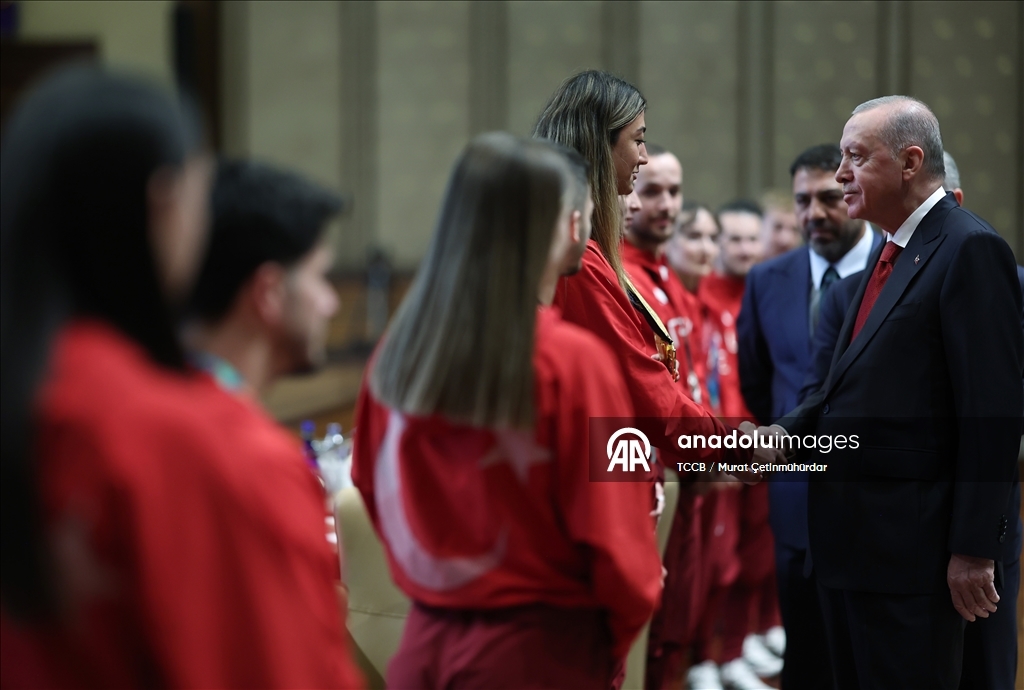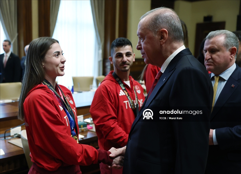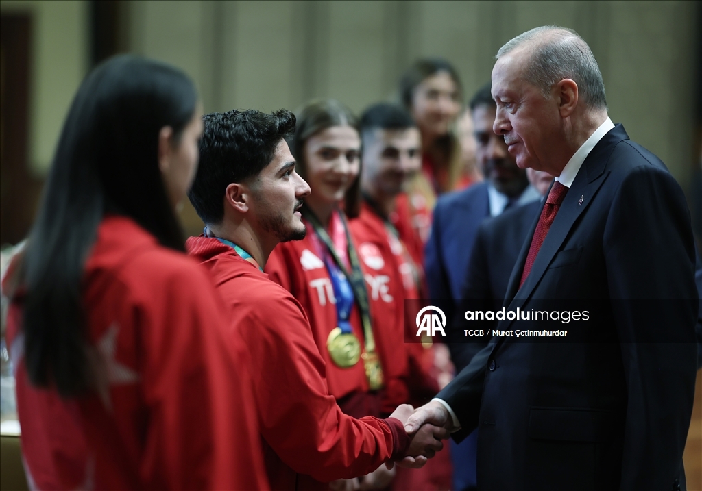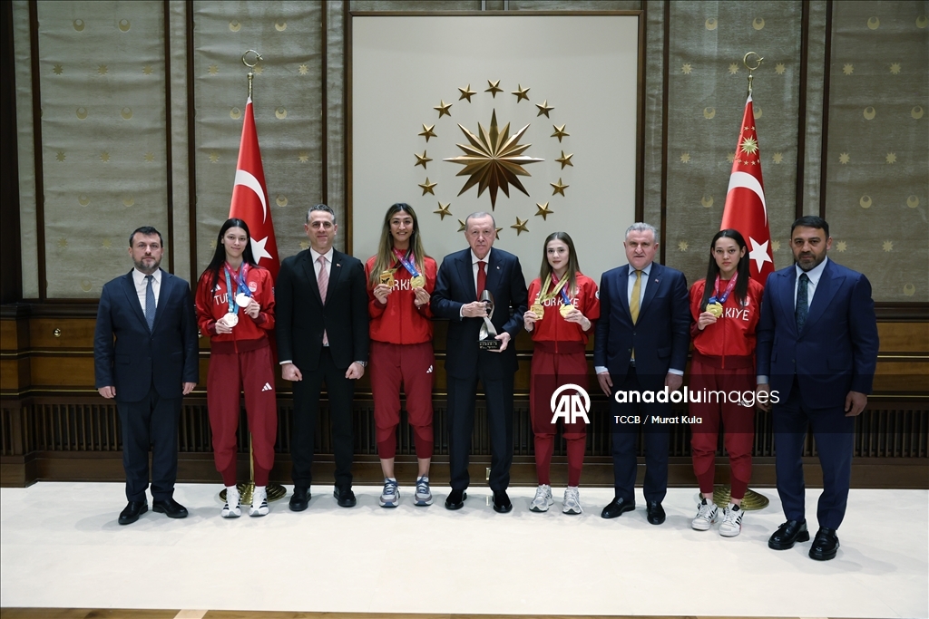 Cumhurbaşkanı Erdoğan, 2020-2025 yıllarında düzenlenen Avrupa ve dünya şampiyonaları ile olimpiyatlarda tekvando, halter ve karate branşlarında başarı gösteren sporcuları kabul etti.