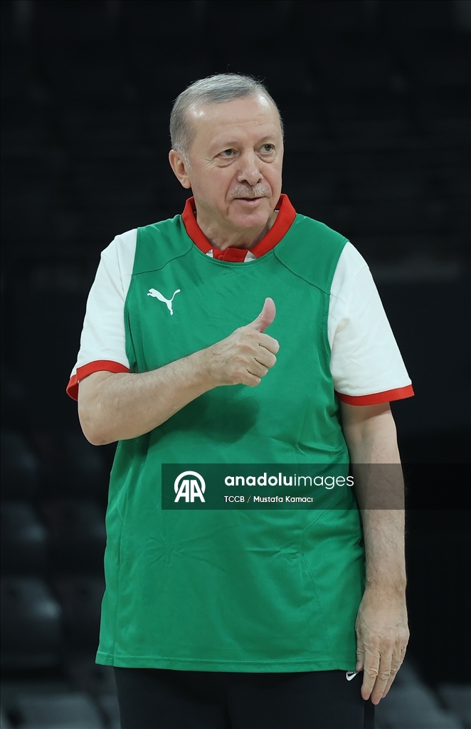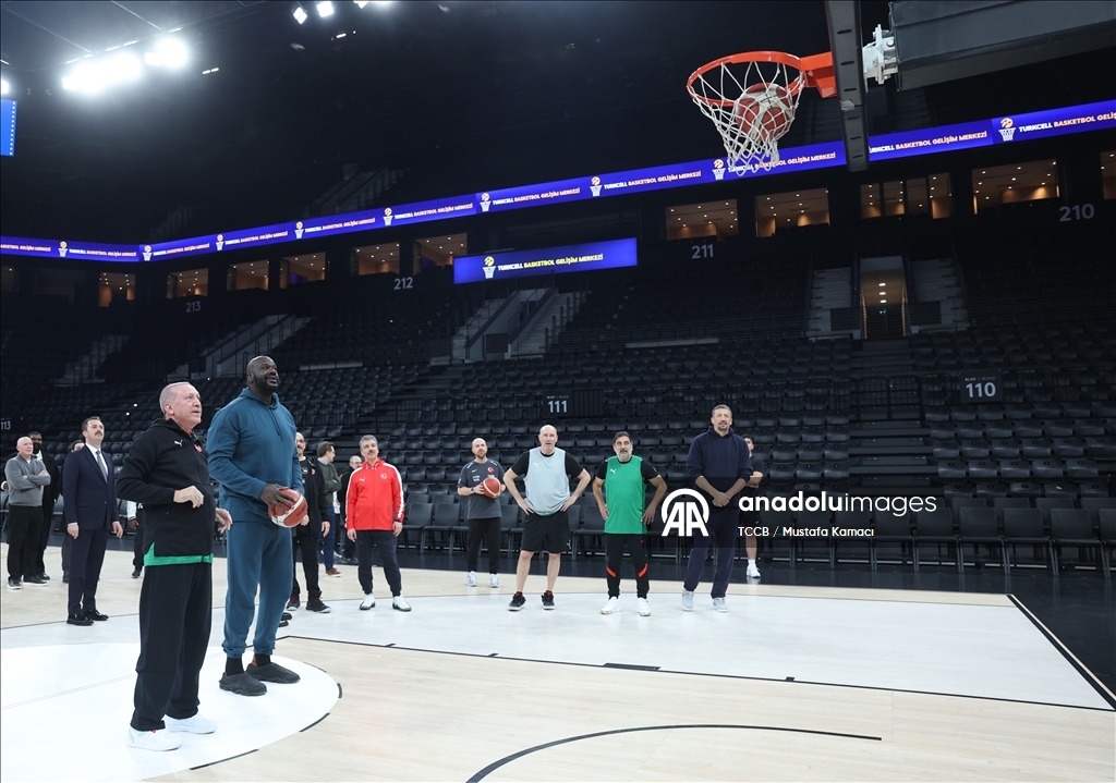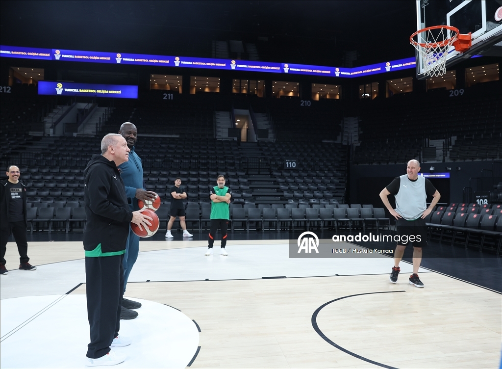 Cumhurbaşkanı Erdoğan, eski NBA oyuncusu Shaquille O'Neal ile basketbol oynadı
