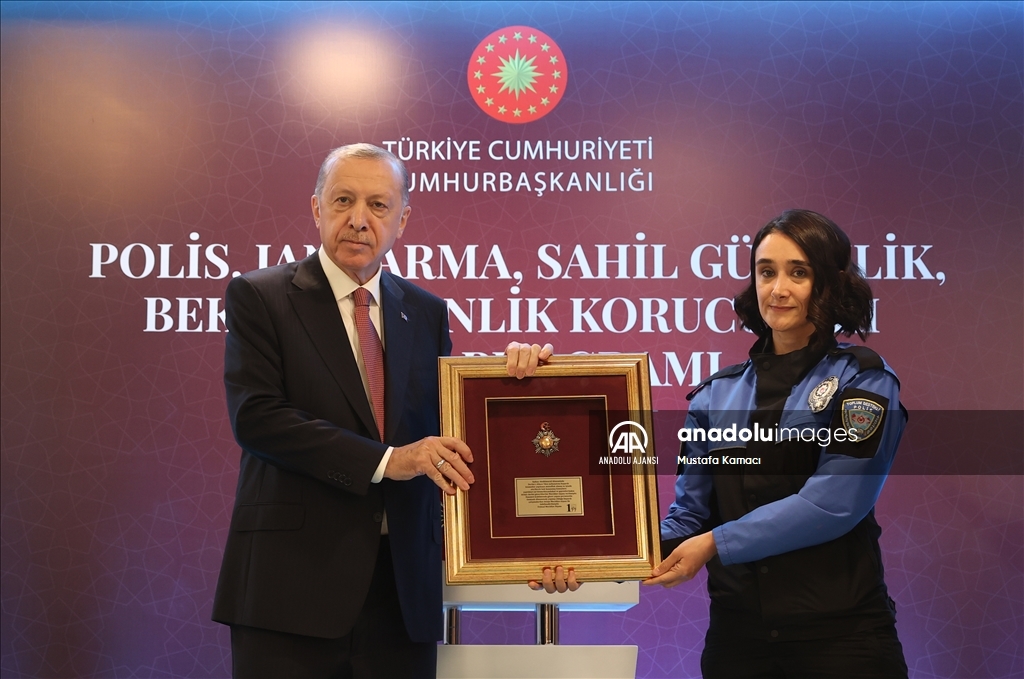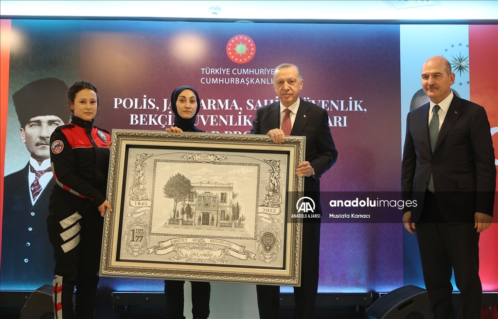 Cumhurbaşkanı Erdoğan, polislerin yerleşim merkezlerinde, jandarmanın kırsalda, sahil güvenliğin kıyılarda ifa ettikleri görevlerle vatandaşın huzurunu ve dolayısıyla devletin anlamını koruduğunu belirterek, "Ve özellikle de unutmayınız, bireyde her işin başı sağlık iken toplumda her işin başı güvenliktir, huzurdur. Şayet her bir insanımız can ve mal güvenliğinden emin şekilde hayatını sürdüremiyorsa diğer hiçbir şeyin önemi yoktur. Sizler işte bu huzurun teminatı olan güvenlik güçlerimizin temsilcilerisiniz." diye konuştu.