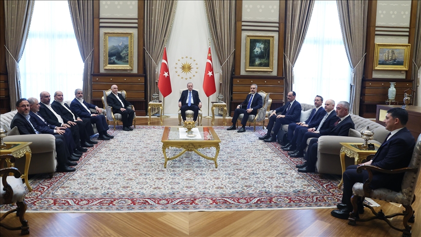 Cumhurbaşkanlığı İletişim Başkanlığından yapılan açıklamada, "Cumhurbaşkanımız Sayın Recep Tayyip Erdoğan, Hamas Şura Meclisi Başkanı Muhammed Derviş'i ve Hamas heyetini Cumhurbaşkanlığı Külliyesi'nde kabul etti." ifadelerine yer verildi.