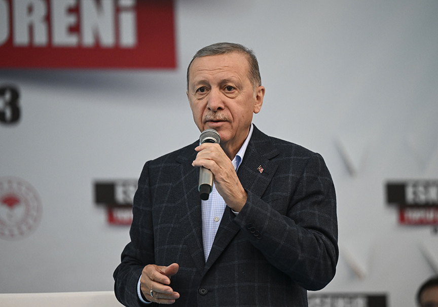 Alandakilere, "Eskişehir, 14 Mayıs'ta bunları sandığa gömecek mi?" diye soran Erdoğan, "Evet" yanıtı üzerine, "Biz nasıl IMF'yi kapımızdan gönderdiysek sevgili Eskişehirli kardeşlerim inşallah sandıkta da bunları. 21 sene bunlar hiç iktidar olabildi mi? Şimdi 14 Mayıs'ta ne diyoruz? 'Yine olamayacaklar' diyor muyuz?" diye seslendi.