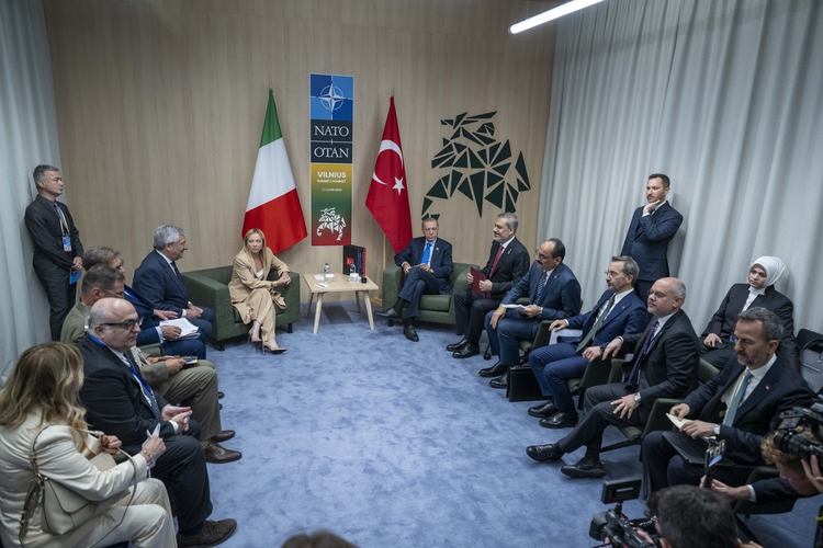 Meloni, "Vilnius zirvesinde Türkiye Cumhurbaşkanı Recep Tayyip Erdoğan ile görüştüm. Beraber, Akdeniz'in güney kıyılarına ilişkin taahhütleri güçlendirmeye yönelik ortak çıkarlar ile ülkelerimiz arasındaki işbirliğini ve ekonomik ilişkileri nasıl geliştirebileceğimizi ele aldık. Adil ve kalıcı barış için çalışmaya devam edeceğiz." ifadelerini kullandı.