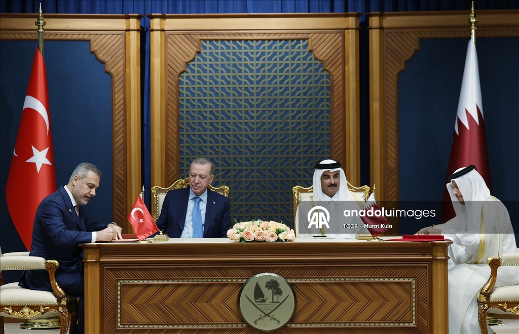 Cumhurbaşkanı Erdoğan, Türkiye-Katar stratejik ortaklığının, bölgesel ve küresel istikrara ciddi katkı sağladığını ve Gazze'de tesis edilen ateşkesin Filistinlilere nefes aldırdığını belirterek, İsrail-Filistin sorununda iki devletli formülün yegane çözümü teşkil ettiğini, bu amaca yönelik gayretlerin süreceğini kaydetti.