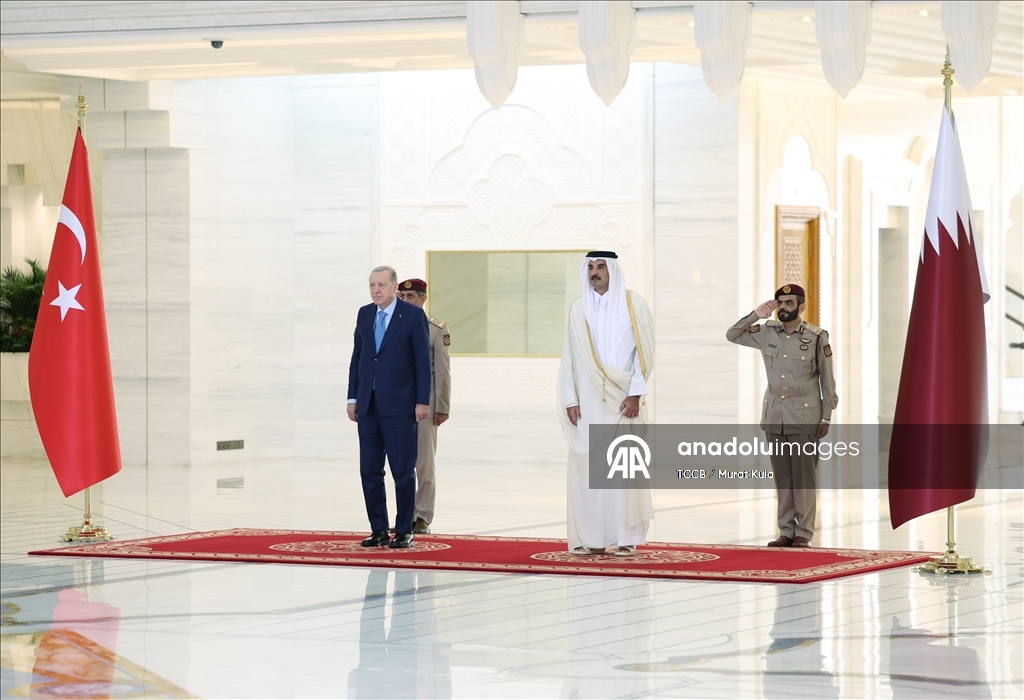 Cumhurbaşkanı Recep Tayyip Erdoğan, resmi ziyareti kapsamında geldiği Katar'da, Katar Emiri Şeyh Temim bin Hamed Al Sani ile bir araya geldi.