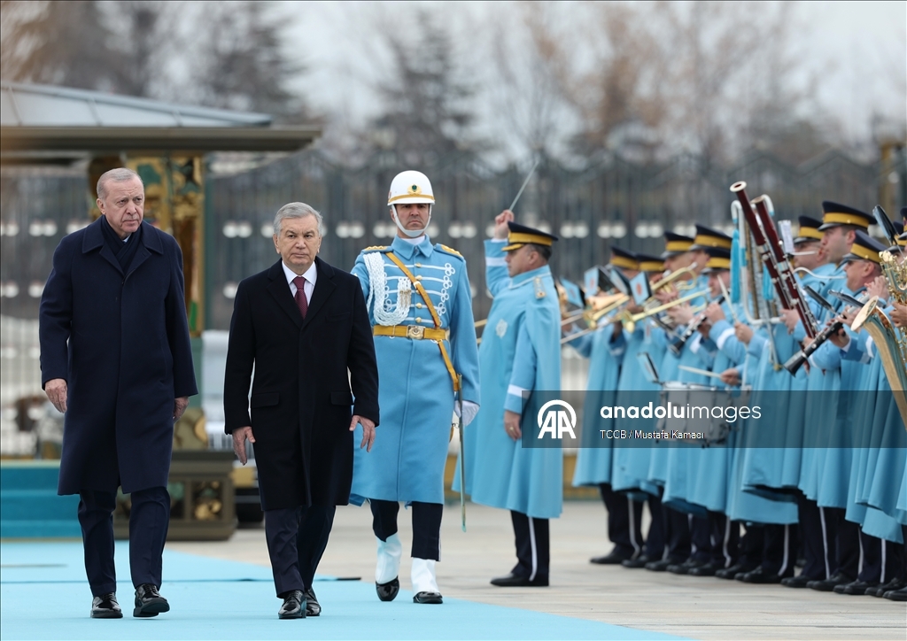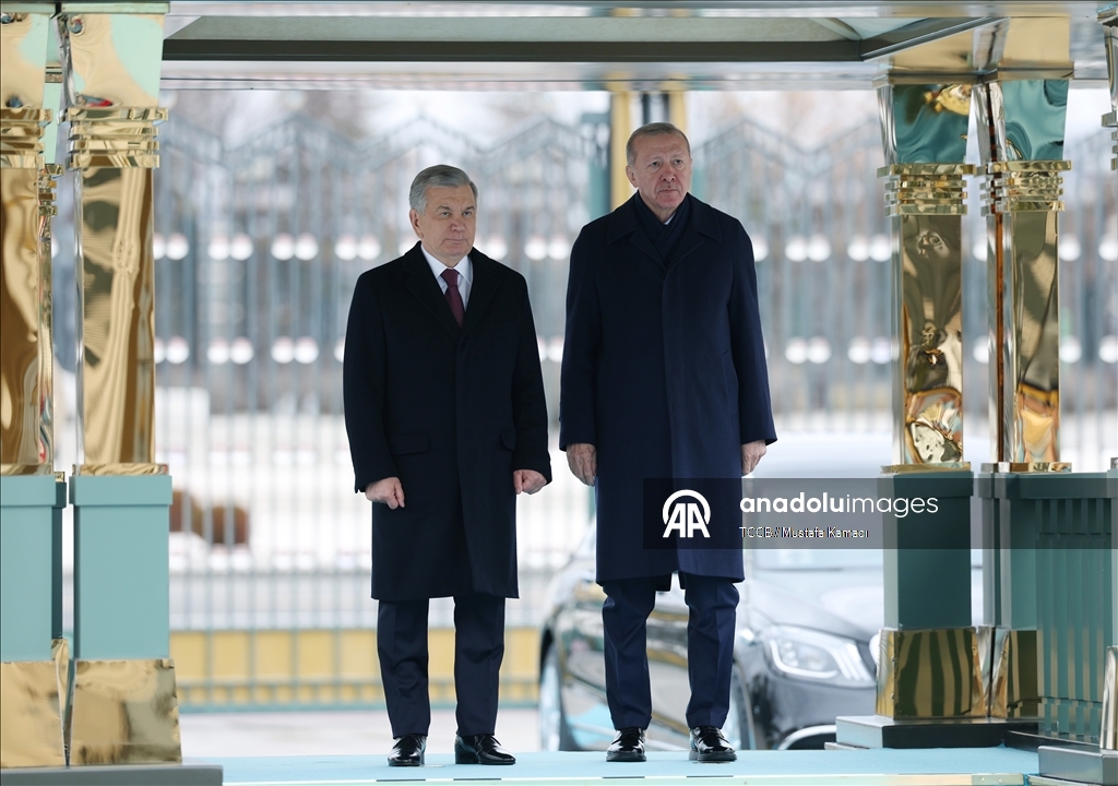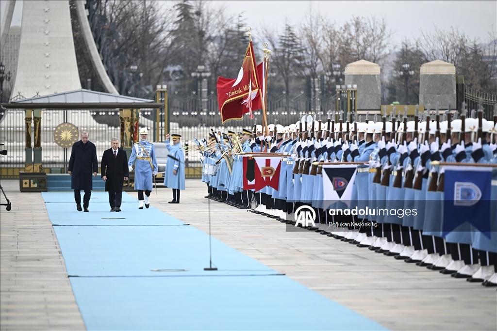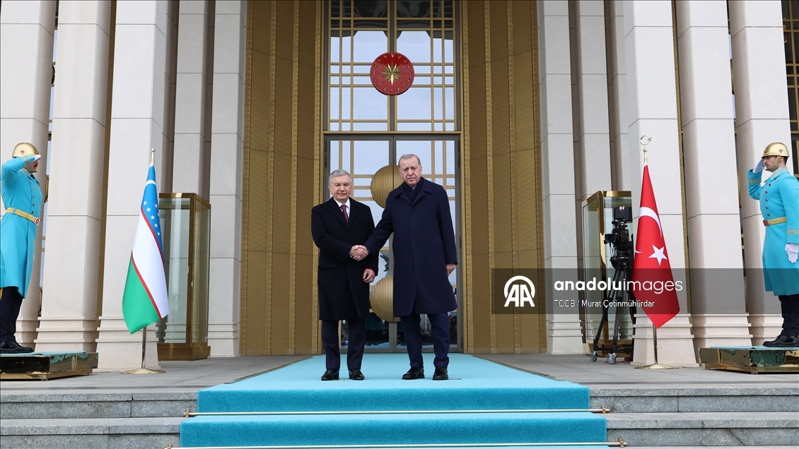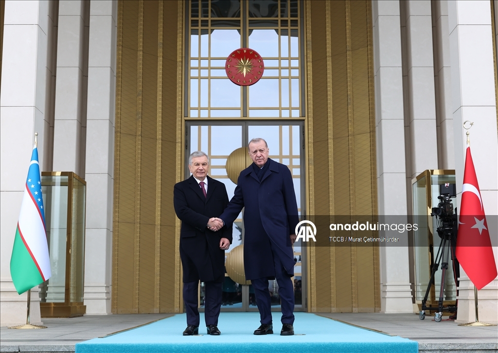 Cumhurbaşkanı Recep Tayyip Erdoğan, Türkiye'yi ziyaret eden Özbekistan Cumhurbaşkanı Şevket Mirziyoyev'i Cumhurbaşkanlığı Külliyesi'nde resmi törenle karşıladı.