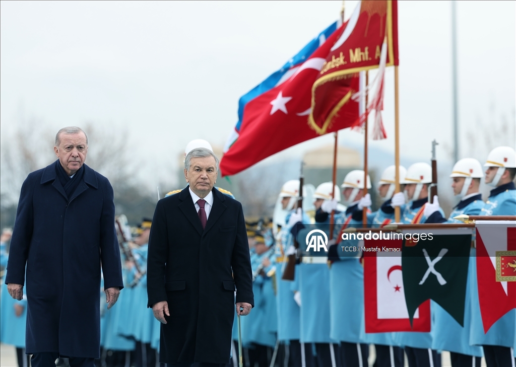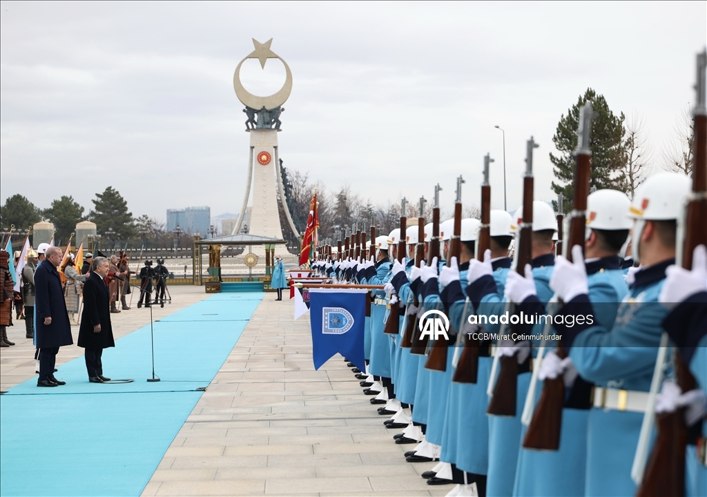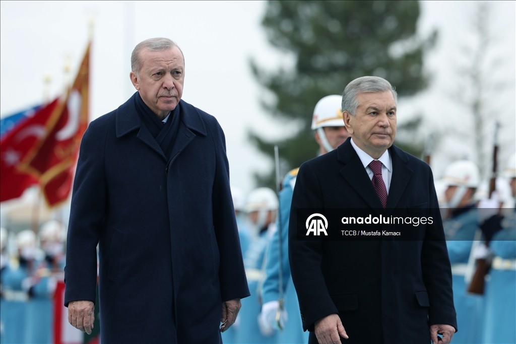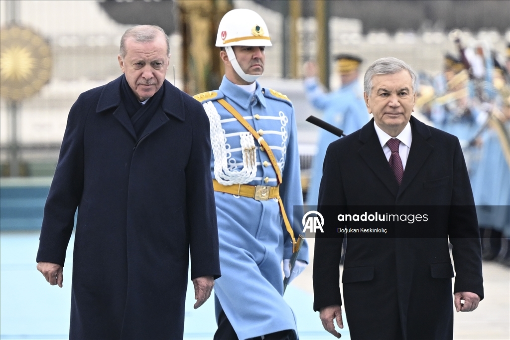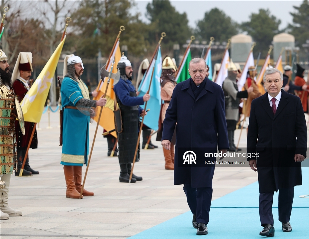 Cumhurbaşkanı Recep Tayyip Erdoğan, Türkiye'yi ziyaret eden Özbekistan Cumhurbaşkanı Şevket Mirziyoyev'i Cumhurbaşkanlığı Külliyesi'nde resmi törenle karşıladı.