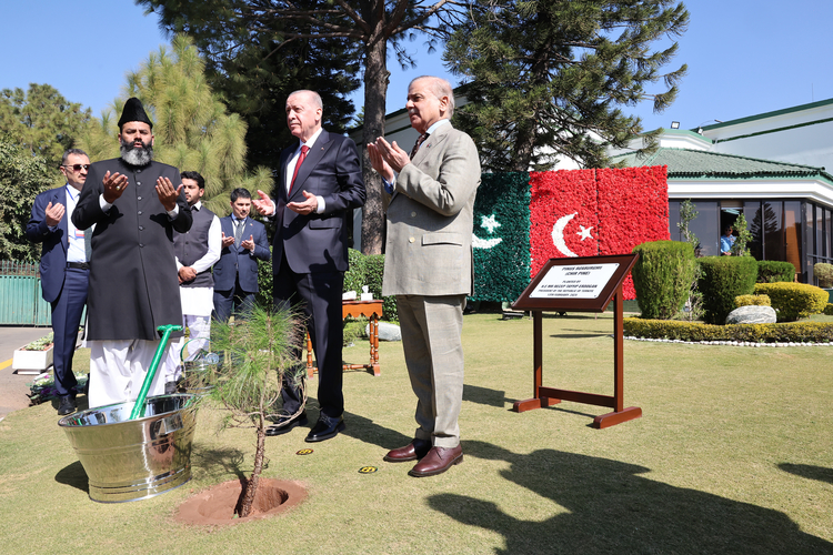 Erdoğan ve Şerif, fidan dikiminin ardından Pakistan Hava Kuvvetleri'nin gerçekleştirdiği "Saygı Uçuşu"nu izledi.