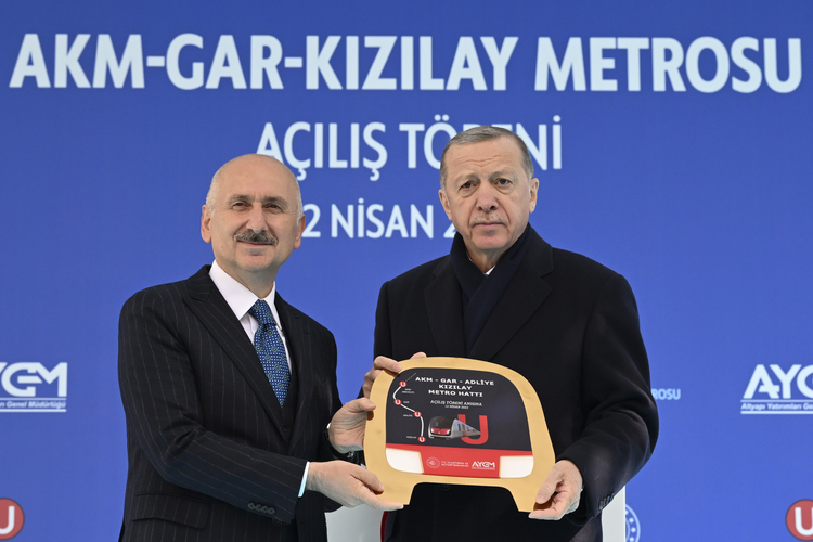 Açılışı yapılan AKM-Gar-Kızılay Metro Hattı'nın Ankaralılara hayırlı olmasını dileyen Erdoğan, bu yatırımı şehre kazandıran Ulaştırma ve Altyapı Bakanlığının yüklenici firmasında çalışan mühendisinden işçisine herkesi tebrik etti.