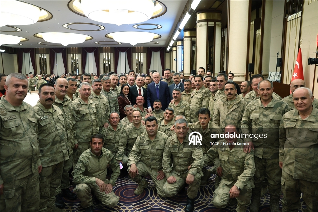 "Kahramanlar, şairin dediği gibi, 'yurdu yaşatmak için vardır' ve bir milletin bekası kahramanlarının varlığına bağlıdır. Kahramanlarımız, gazilerimiz ve şehitlerimizin omuzları üzerine yükselen bu devlet, bundan sonra da sonsuza kadar kahramanlarıyla var olacak, masum ve mazlumların umut adresi olmaya devam edecektir. Türkiye Yüzyılı vizyonunda anlamını bulan büyük ve güçlü Türkiye'ye inşallah beraberce vasıl olacağız. Rabbim yolumuzu bahtımıza açık etsin diyorum. Ülkenize ve milletinize yaptığınız hizmetlerden dolayı her birinize tek tek teşekkür ediyorum. Bugün burada bulunamayan, görev başında olan, nöbette olan tüm kardeşlerimize selamlarımı iletmenizi sizlerden istirham ediyorum. Allah yardımcınız olsun."
