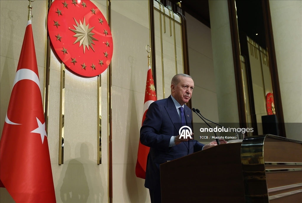Yeniden şekillenen dünya sisteminde bölgesinin kutup başı olarak yerini pekiştiren bir Türkiye'yi süratle inşa ettiklerini belirten Erdoğan, şöyle konuştu: