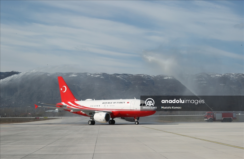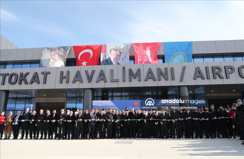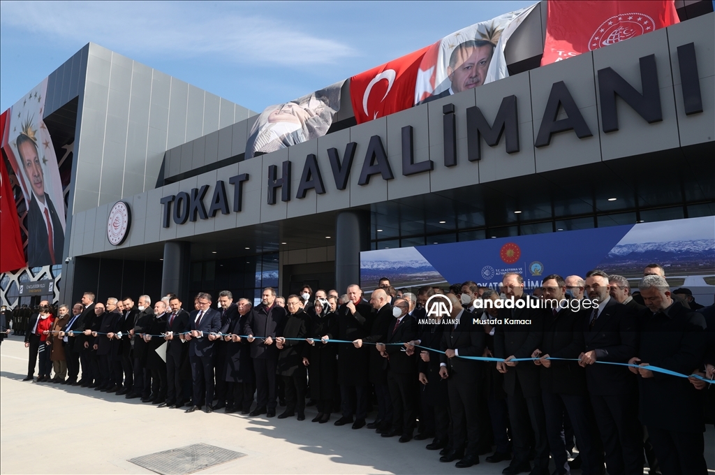 Cumhurbaşkanı Recep Tayyip Erdoğan, Tokat Yeni Havalimanı ve yapımı tamamlanan diğer projelerin toplu açılış törenine katılmak üzere Tokat'a geldi. Erdoğan'ı taşıyan uçak, yeni yapılan Tokat Yeni Havalimanı'na indi. Uçak, havalimanına inişinde su takıyla karşılandı. Havalimanına ilişkin yetkililerden bilgi alan Erdoğan, daha sonra beraberindekilerle kurdele keserek havalimanının açılışını gerçekleştirdi.