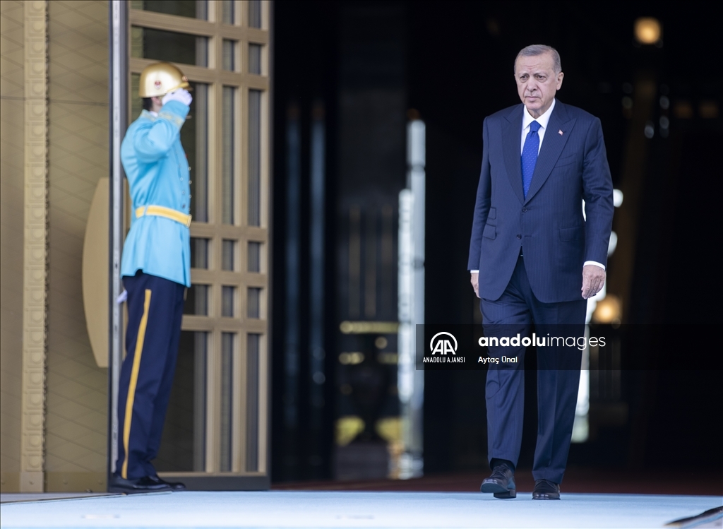Cumhurbaşkanı Erdoğan, Maduro'yu Cumhurbaşkanlığı Külliyesi'nin ana giriş kapısında karşıladı.
