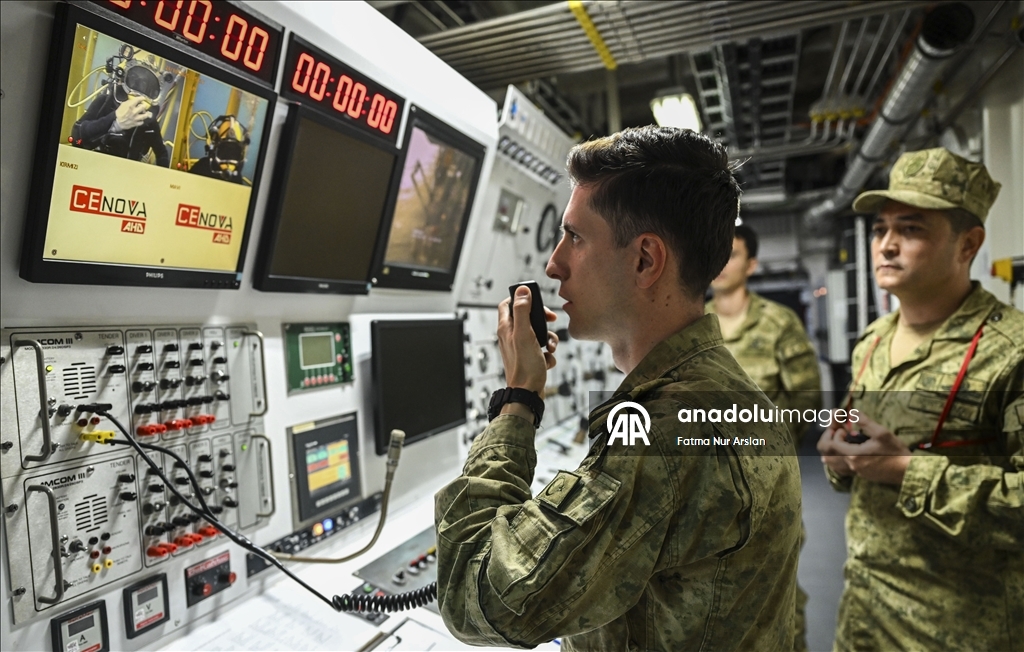 Su üstündeki süpervizörler ise dalgıcı hem başlığındaki hem de aynı mevkiye indirilen su altı cihazı üzerindeki kameradan takip ederek, olası deniz altı araçları veya batık gemilere müdahale konusunda yönlendirdi.