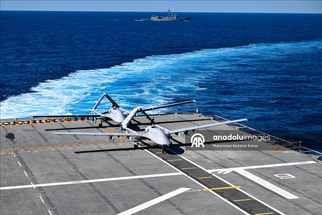 TCG Anadolu gemisinden kalkış yapan Bayraktar TB3, belirlenen hedefi imha ettikten sonra yeniden gemiye başarıyla indi.