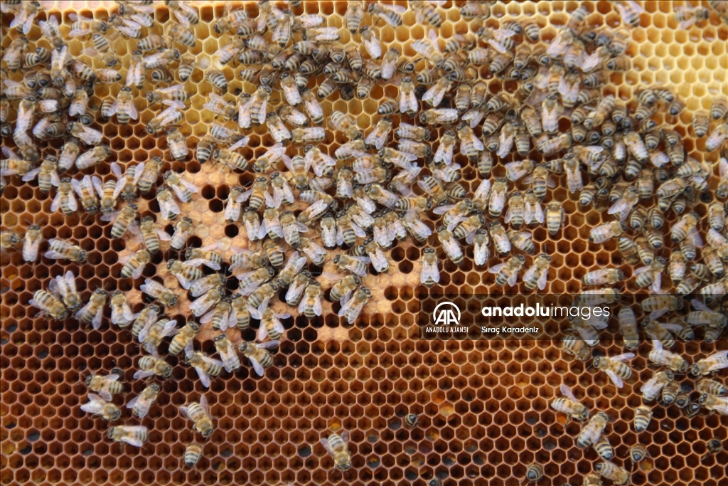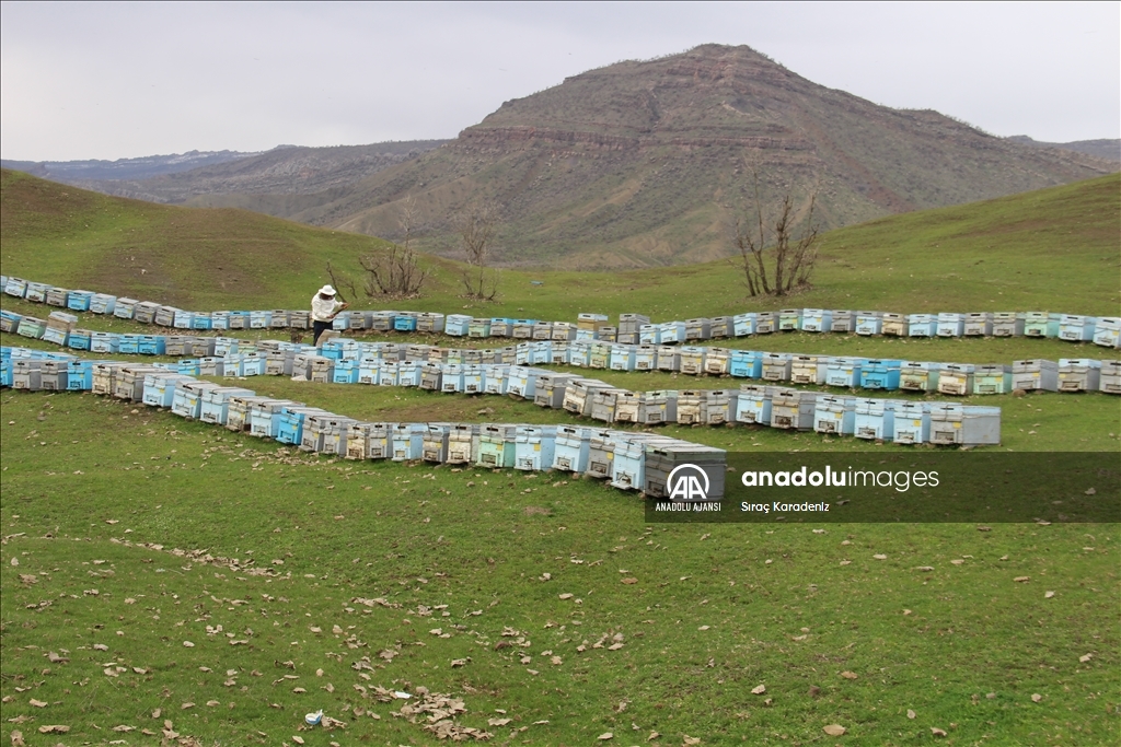 Yüksek verim almak için arılarına özenle bakan arıcılar, günün büyük bölümünü sağım, kovan temizleme ve petek aktarma işlemi yaparak geçiriyor. Arıcılar, mayıs ayında, binbir çeşit çiçek ve endemik türlerin lezzetini taşıyan organik bal üretimi için arılarını yüksek rakımlı serin yaylalara götürecek.