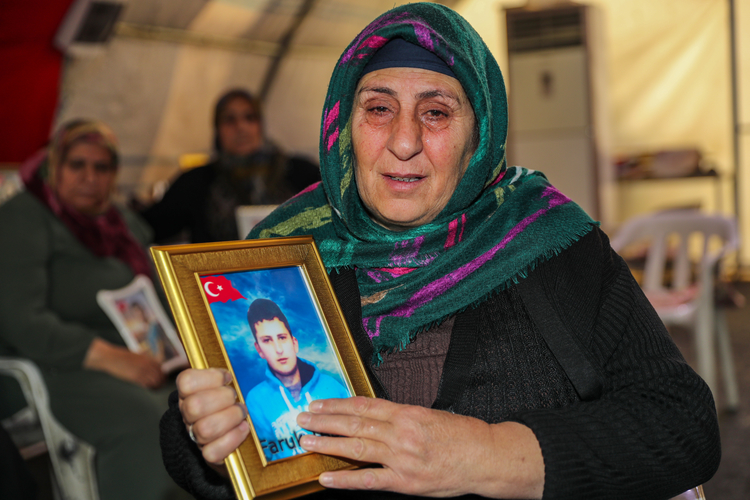 Kars'tan 10 yıl önce 15 yaşında dağa kaçırılan oğlu Faruk için gelerek eylem yapan anne Rahime Taşçı ise tek amacının evladına kavuşmak olduğunu söyledi.