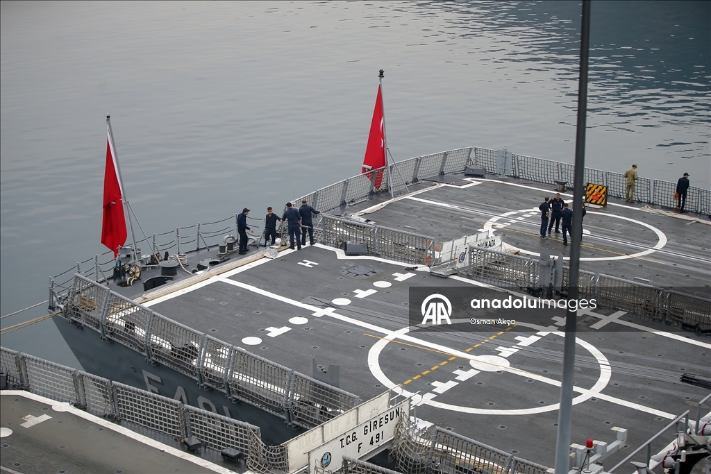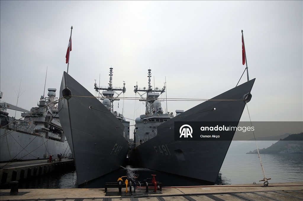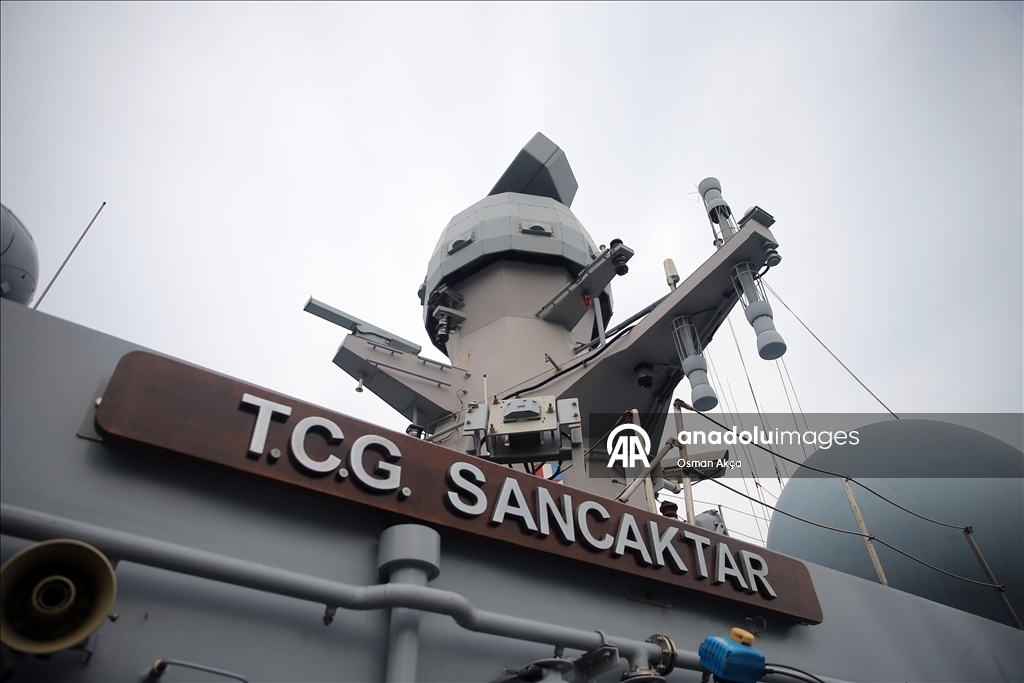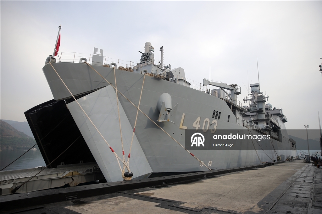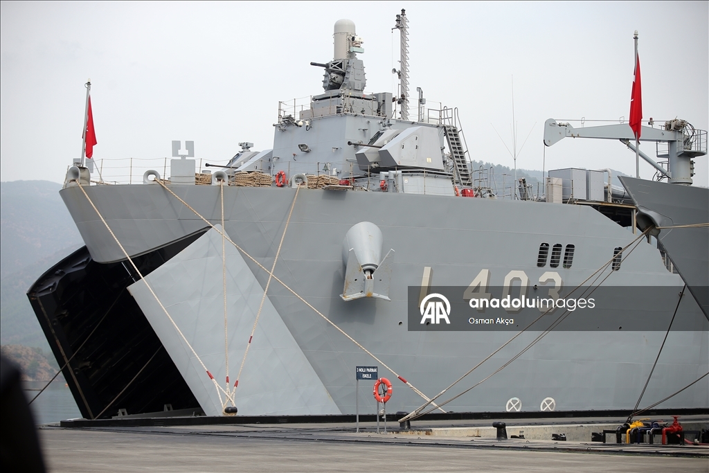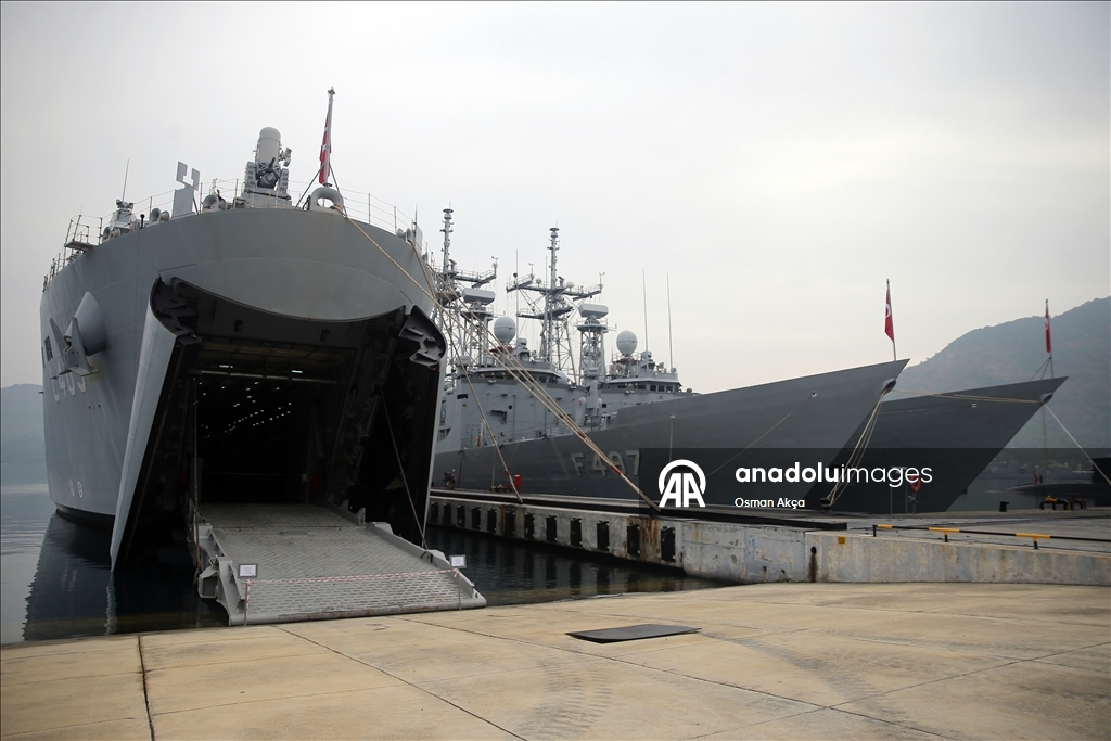 Marmaris'teki Aksaz Deniz Üs Komutanlığı'nda bulunan TCG Sancaktar fırkateyninde düzenlenen brifingde, Deniz Kurmay Binbaşı Ali Ercüment Opçin sunum yaptı.