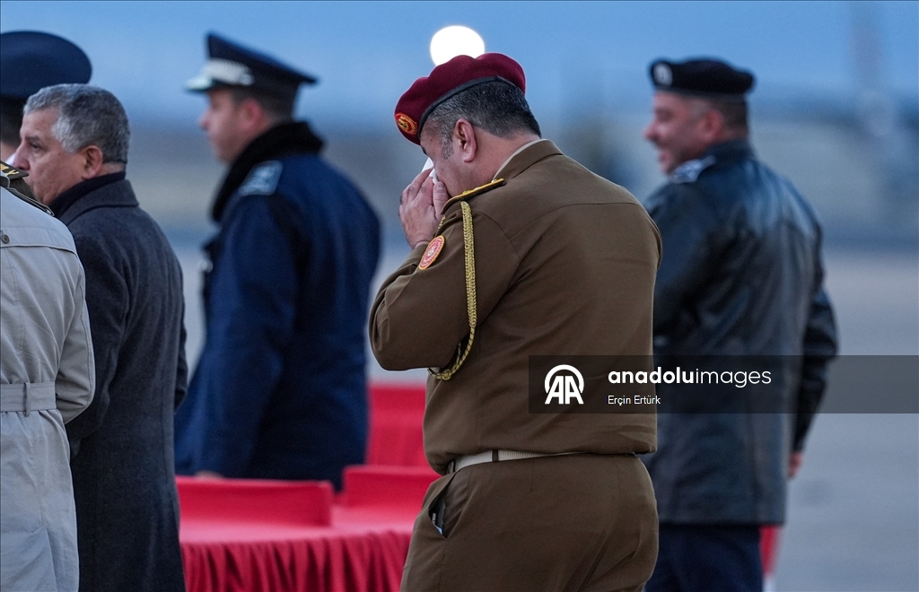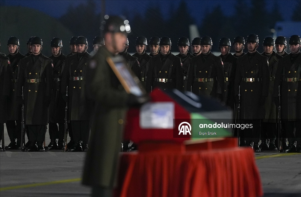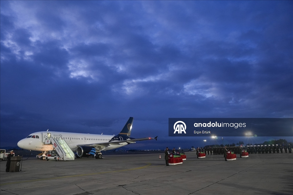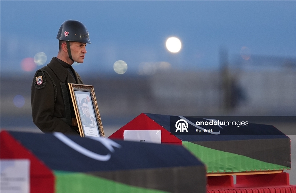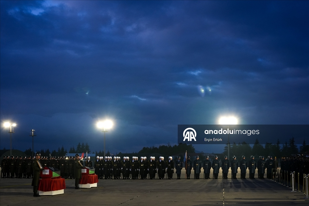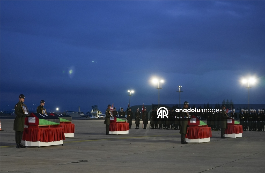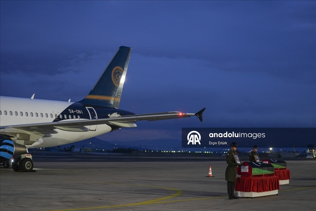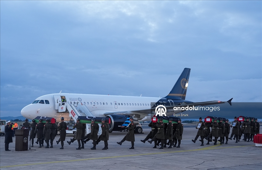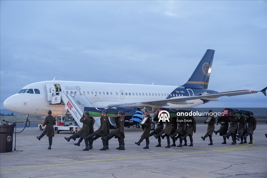 Hayatını kaybeden Libya askeri heyetinin naaşlarının Libya'ya ulaşmasının ardından Trablus Uluslararası Havaalanında tören düzenlendi.