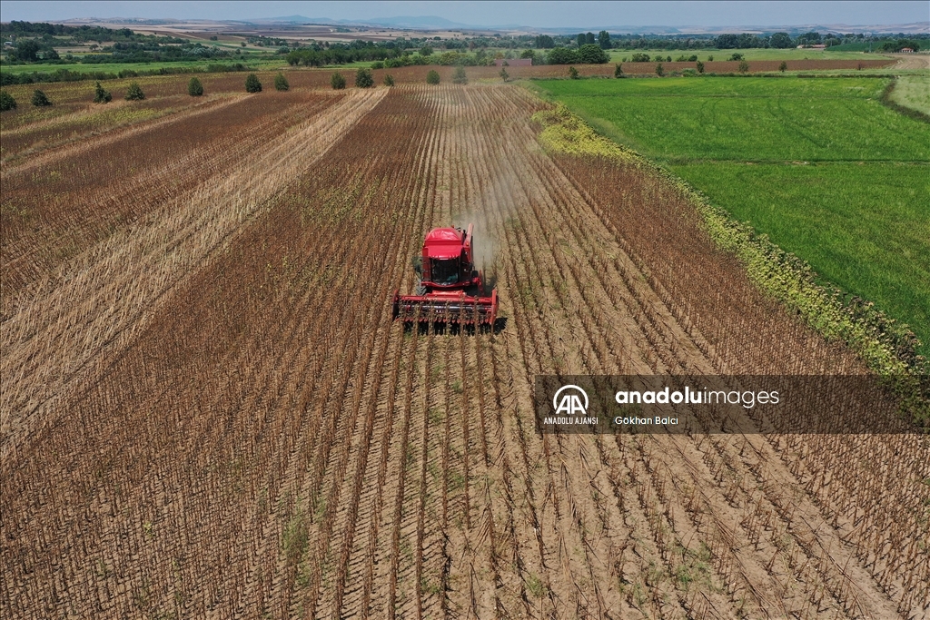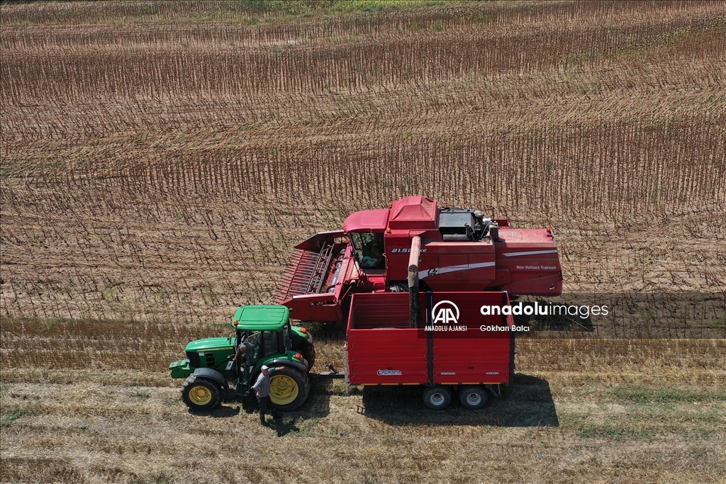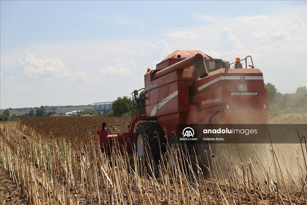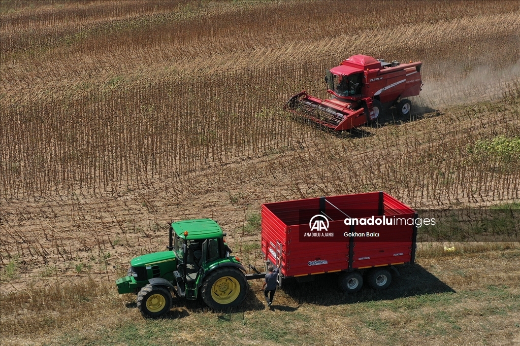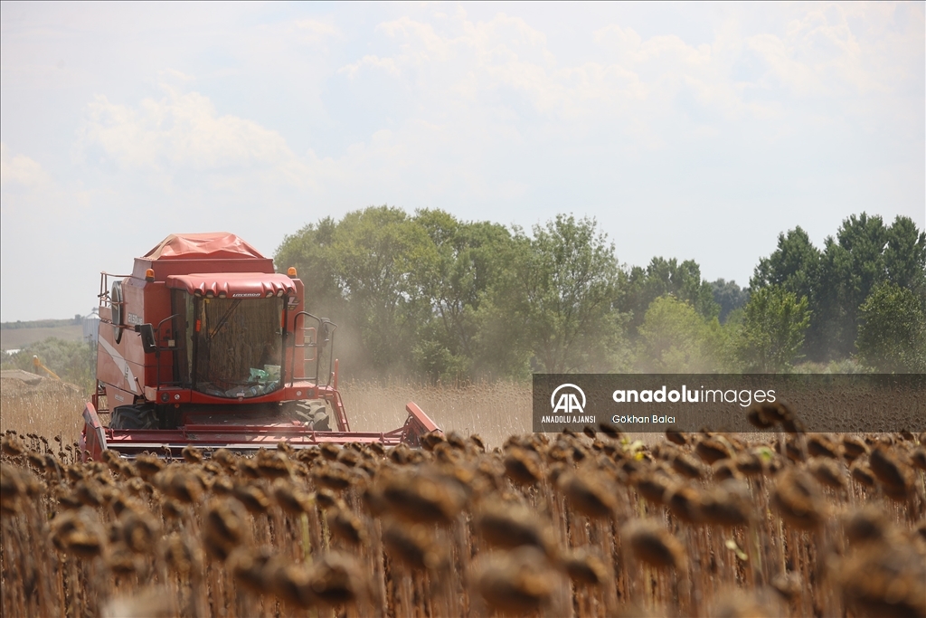Türkiye'nin önde gelen ayçiçeği üretim merkezlerinden Edirne'de, üreticilerin hasat mesaisi başladı.