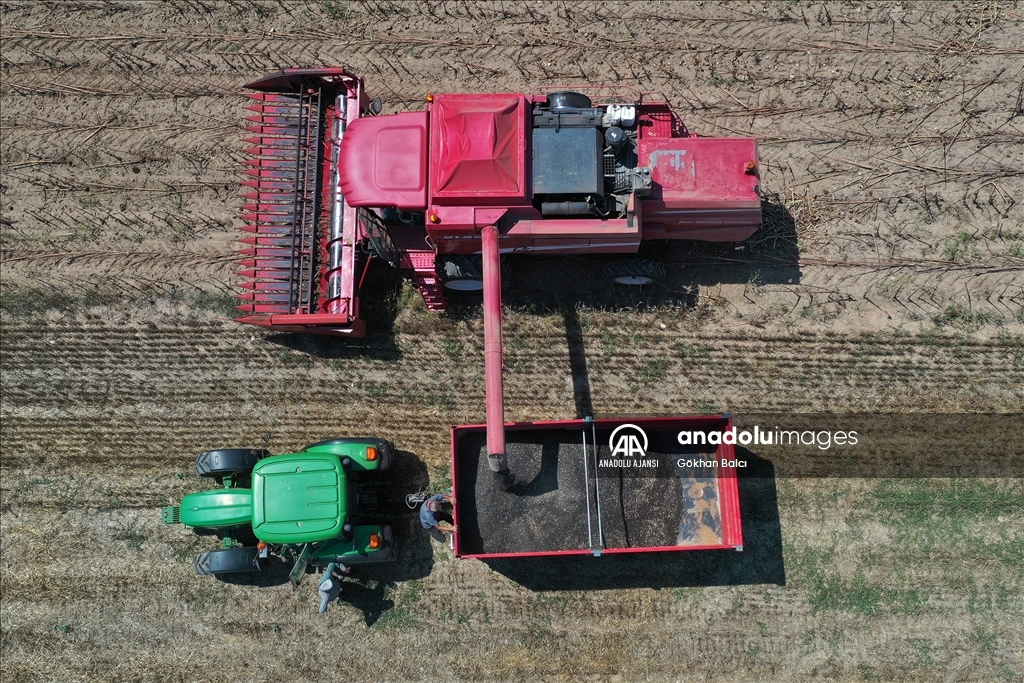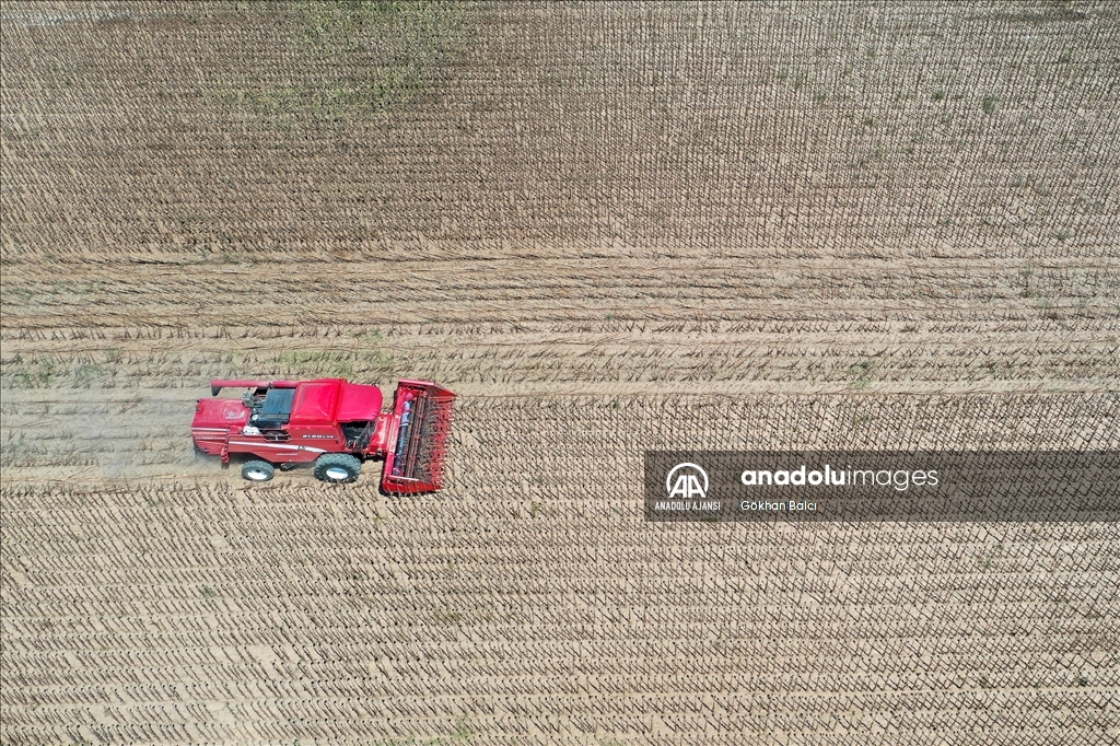 Hasadın verimli başladığını dile getiren Çakır, "Verimler beklentimizin üzerinde. Yerine göre dekarda 180-200 kilogram arasında değişiyor. Güçlü topraklarda verimin 250-300 kilogram kadar olmasını bekliyoruz." dedi.