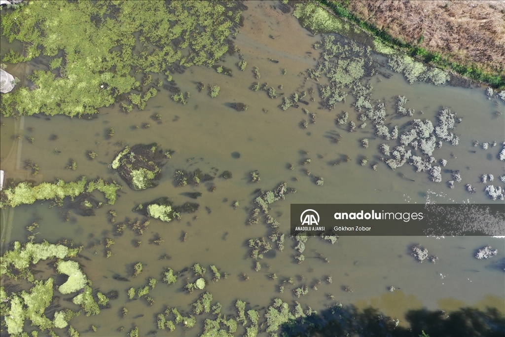 Su akışının yavaşlamasıyla nehrin bazı bölümleri yosunla kaplandı. Bu bölümlerde biriken plastik ve cam atıklar da kirlilik oluşturdu.