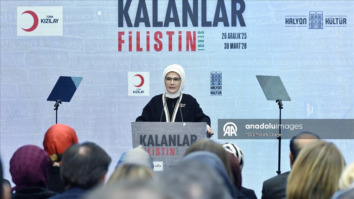 Cumhurbaşkanı Recep Tayyip Erdoğan'ın eşi Emine Erdoğan, Kalyon Vakfı ve Türk Kızılay işbirliğinde, Gazze'de yıkımın içinden doğan vakur direnişi sanatın diliyle görünür kılma amacıyla Nişantaşı'nda Kalyon Kültür'ün bulunduğu Tarihi Taş Konak'ta düzenlenen "Kalanlar" Filistin Sergisi'nin açılışında konuştu.