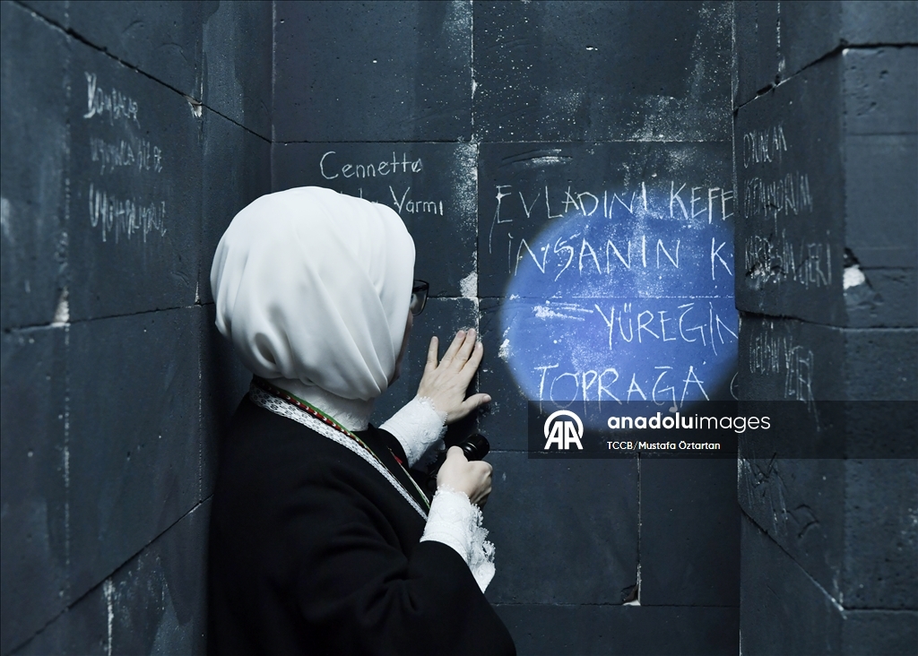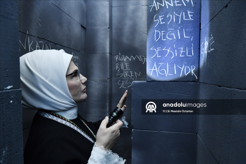 Emine Erdoğan, "Yüz ölçümü sadece 365 kilometrekare, yani aşağı yukarı Beykoz ilçesi kadar bir alan ama gelin görün ki bu avuç içi kadar yer, tarihin en kanlı, en vahşi, en sistematik soykırımıyla, hiçbir vicdanın kaldıramayacağı acıların merkezi oldu." diye konuştu.