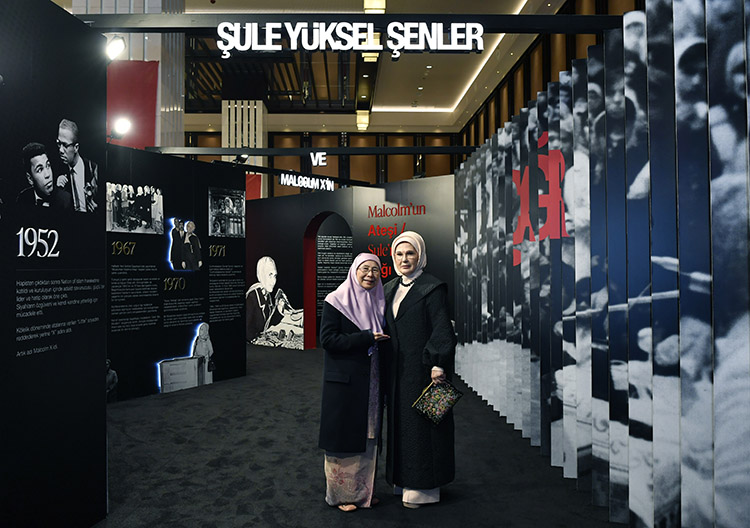 Lider eşleri, daha sonra Şule Yüksel Şenler ile Malcolm X'in hak ve özgürlük mücadelesine ışık tutarak miraslarını yaşatmayı amaçlayan "Yankılar: Şule Yüksel Şenler ve Malcolm X'in Mirasını Yaşatmak Sergisi"ni ziyaret etti.