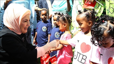 Savaştan kaçıp Türkiye'ye sığınan Suriyelilerin yıkılmış hayatlarını onarmaya, yitirdikleri umutlarını bulmalarına yardım etmeye çalıştıklarını vurgulayan Emine Erdoğan, şunları kaydetti: